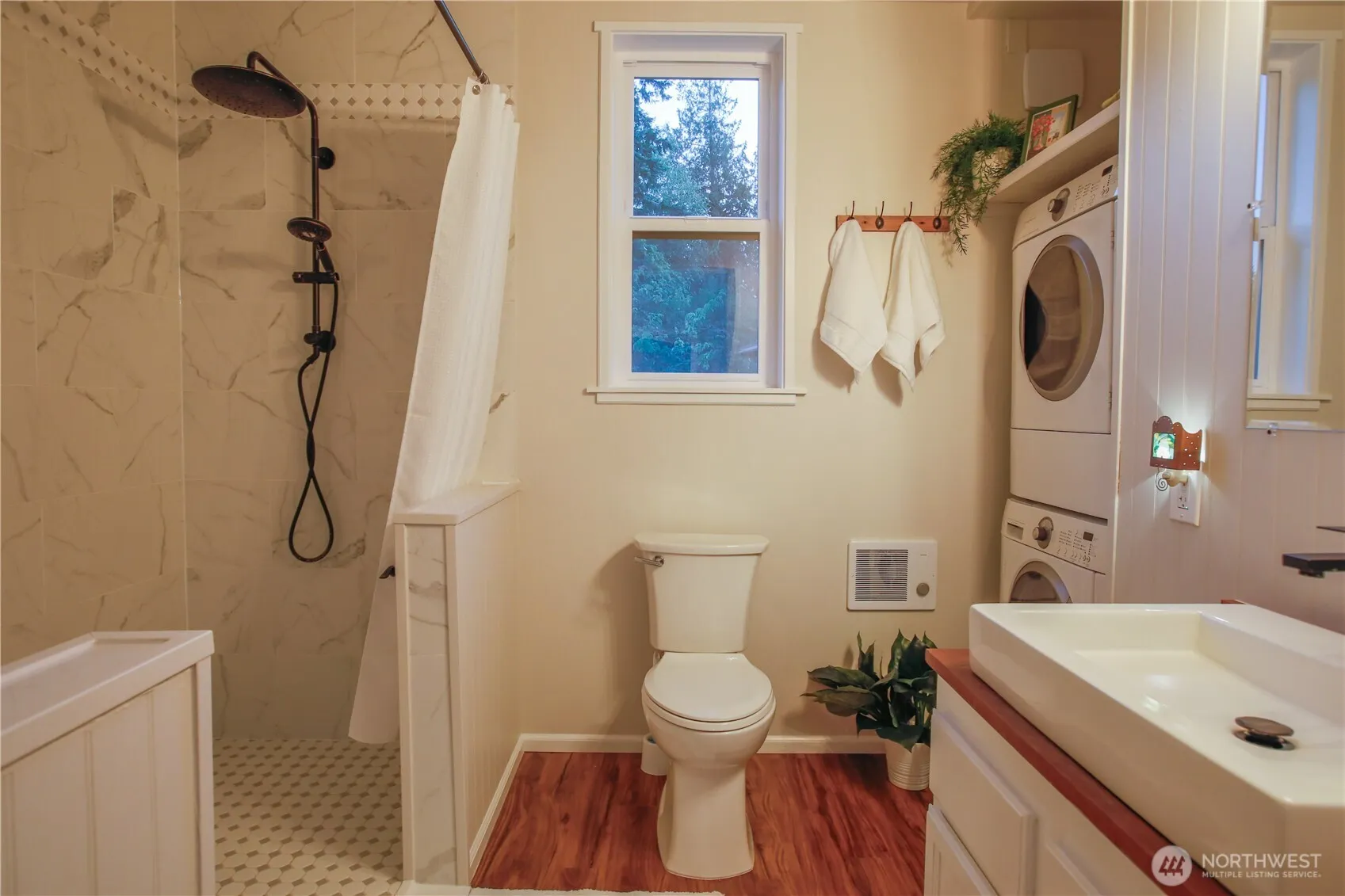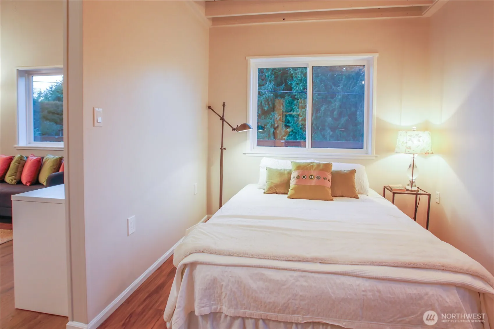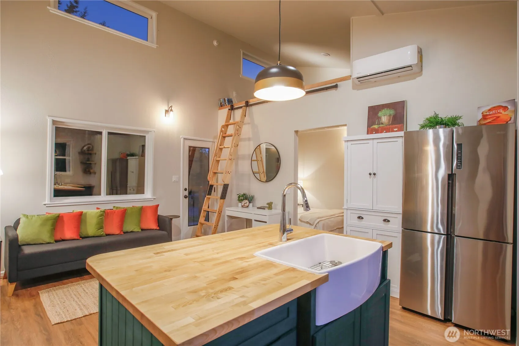 A sweet little home that lives large! This one-bedroom, 660 s.f. home has 480 s.f. on the main plus a 180 s.f. sleeping loft. It was lovingly custom-designed to let in the light and live comfortably and efficiently with a heat pump, metal roof, instant hot water, large shower, stacking washer/dryer, built-in shelves, library ladder, and a kitchen for those who love to cook. Built for ease of accessibility (add’l info avail.) Year built is 2023, but finishing touches were just completed, so it feels brand new. Owner’s plans changed, so it’s ready for its next owner to move right in. 2-bedroom septic. Storage shed, plenty of room to garden. Only 2 miles from the heart of Langley. Private community beach access.