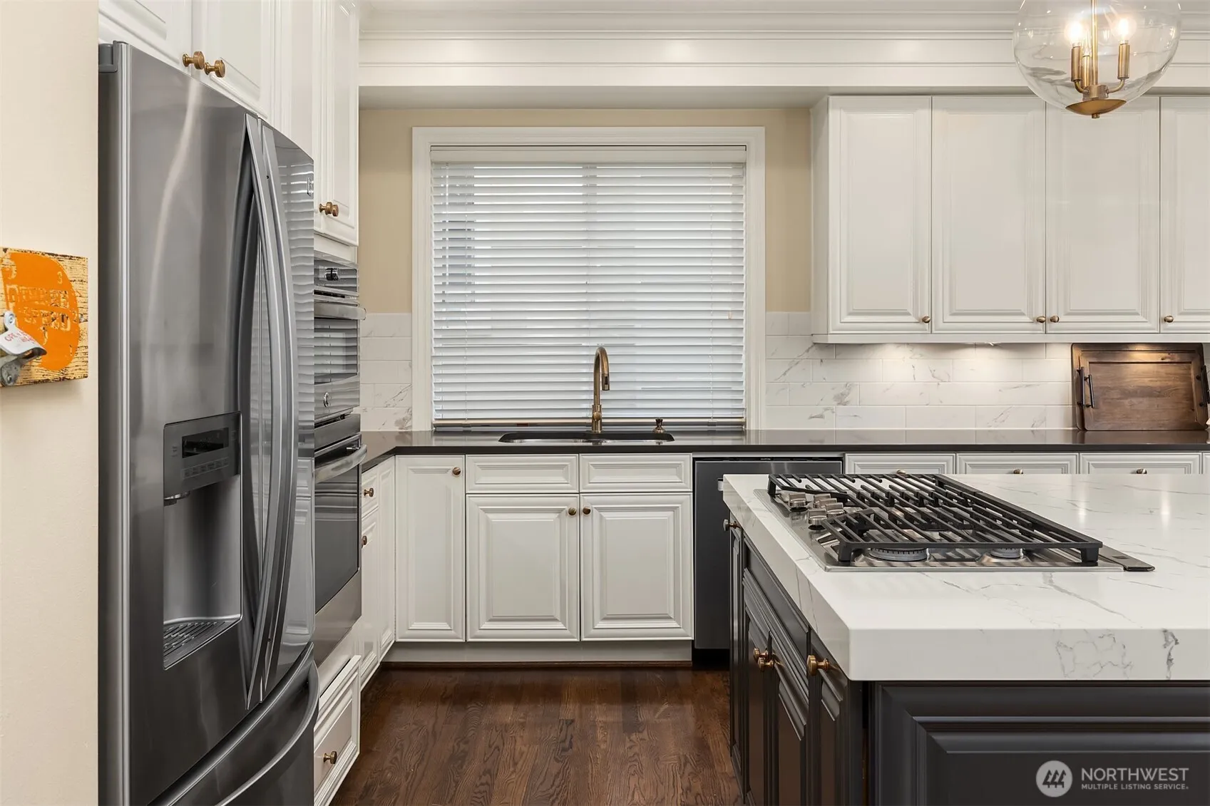 Stunning remodeled home on a premier walkable street in Issaquah Highlands. The elevated kitchen features a large custom island, refined millwork, quartz counters and high-end appliances. Sunlit living spaces open to a tranquil garden courtyard that creates a serene indoor–outdoor retreat. A dedicated home office with exceptional Wi-Fi supports modern life. All bathrooms are newly remodeled, including a beautiful primary suite with herringbone tile and a refined vanity. New windows, new roof, updated systems and AC offer peace of mind. Located in the coveted Grand Ridge Elementary boundary, this home delivers luxury, comfort and effortless convenience.