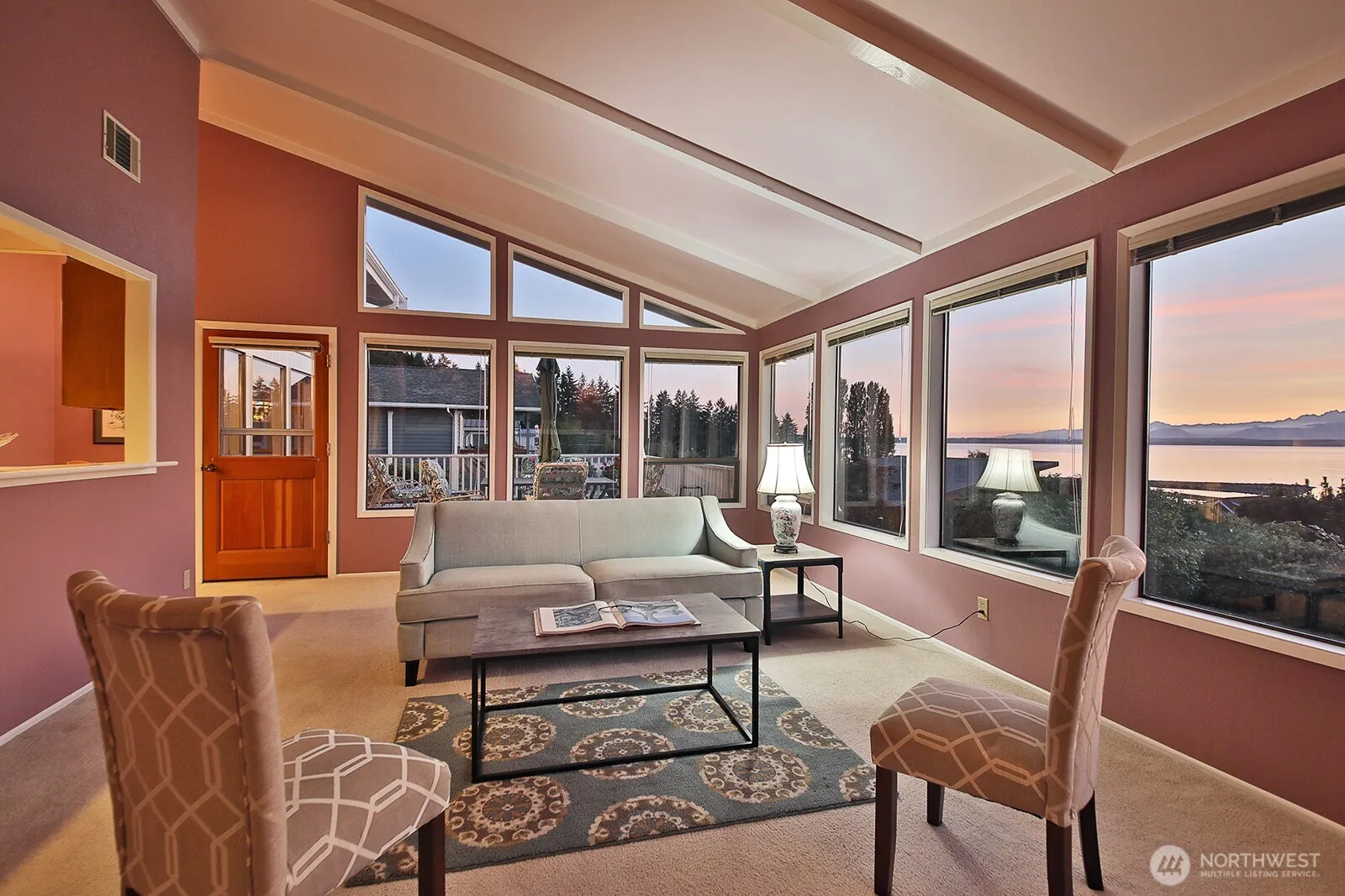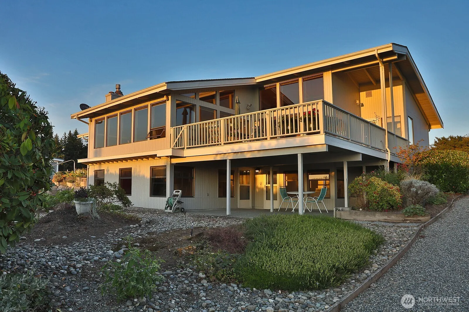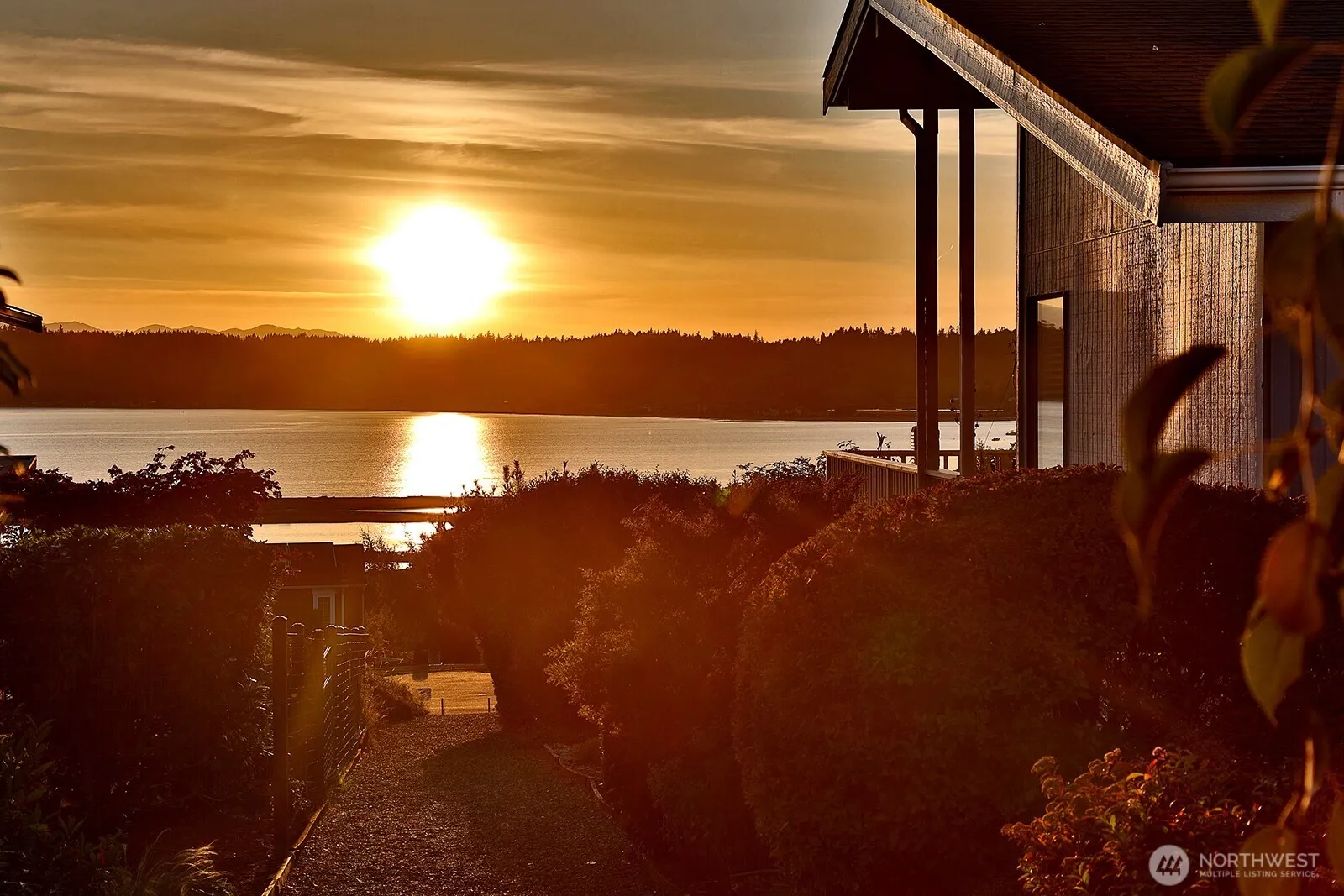 World-class sunsets & sweeping western views over the Olympic Mountains, Double Bluff & Useless Bay highlight this Whidbey Island property in the Sunlight Beach/Olympic Marine View community. Designed to capture light the home features vaulted ceilings, walls of windows to frame the amazing views & an expansive entertainment deck overlooking Puget Sound. Main floor primary bedroom opens directly to the deck, kitchen with eating bar & views while you cook, good sized living room with cozy brick enclosed gas fireplace & lower level family room with wood stove adds warmth & comfort during chilly nights. Outside, enjoy a sun-drenched fenced garden & access to a private community beach. Well maintained & loved home ready for an updated vision!