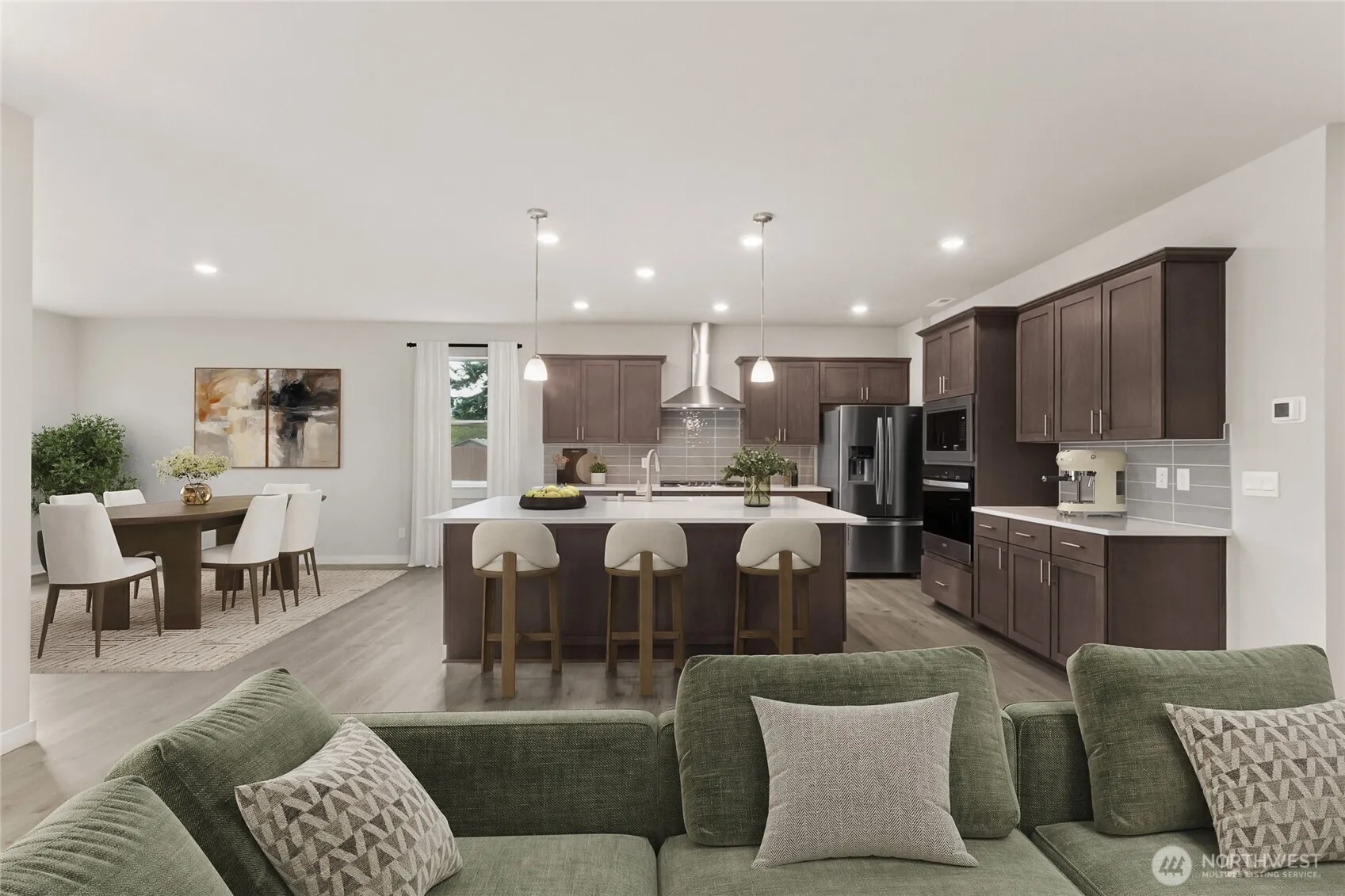 National Red Tag Sale happening now! Discover Harrison Court, a stunning North Bend community with breathtaking mountain views. This single-story Martin plan on lot 28, offers 4 bedrooms, 3 bathrooms, and a 3-car garage. The gourmet kitchen features sleek slab countertops, stainless steel appliances, and a spacious walk-in pantry. As Home of the Week additional appliances installed! The primary suite is a peaceful retreat. Enjoy a spa-like bath with dual walk-in closets, a soaking tub, and a shower. Perfect for entertaining, the large covered patio and expansive yard invite outdoor living. Smart home package and A/C included. Buyers must register their broker on first visit, including open houses. Model Home open for appointments.