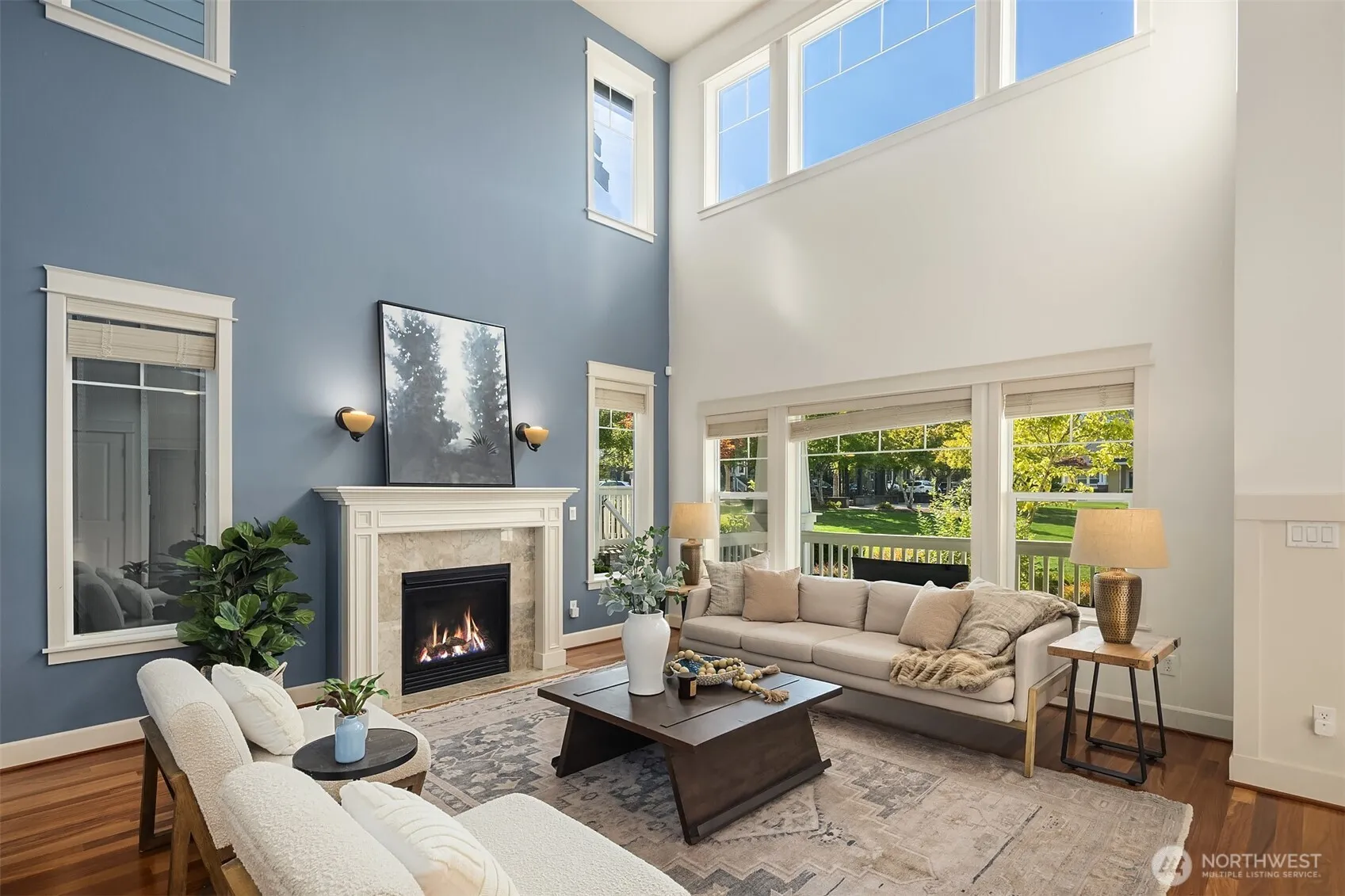 Welcome to this charming Issaquah Highlands home situated next to Dahlia Park. Step inside to soaring ceilings and expansive picture windows that fill the living room with natural light, along with a private home office ideal for work or study. The main floor features a spacious primary suite with an oversized bath and walk-in closet, an open kitchen with plenty of space for entertaining that flows to a fenced in patio. Upstairs you’ll find a cozy loft, two generous beds, and a versatile finished room that can be used for storage, hobbies, or a game room. A storybook-style covered front porch overlooking Dahlia Park completes this wonderful home, blending comfort, charm, and convenience in one of Issaquah’s most desirable neighborhoods.