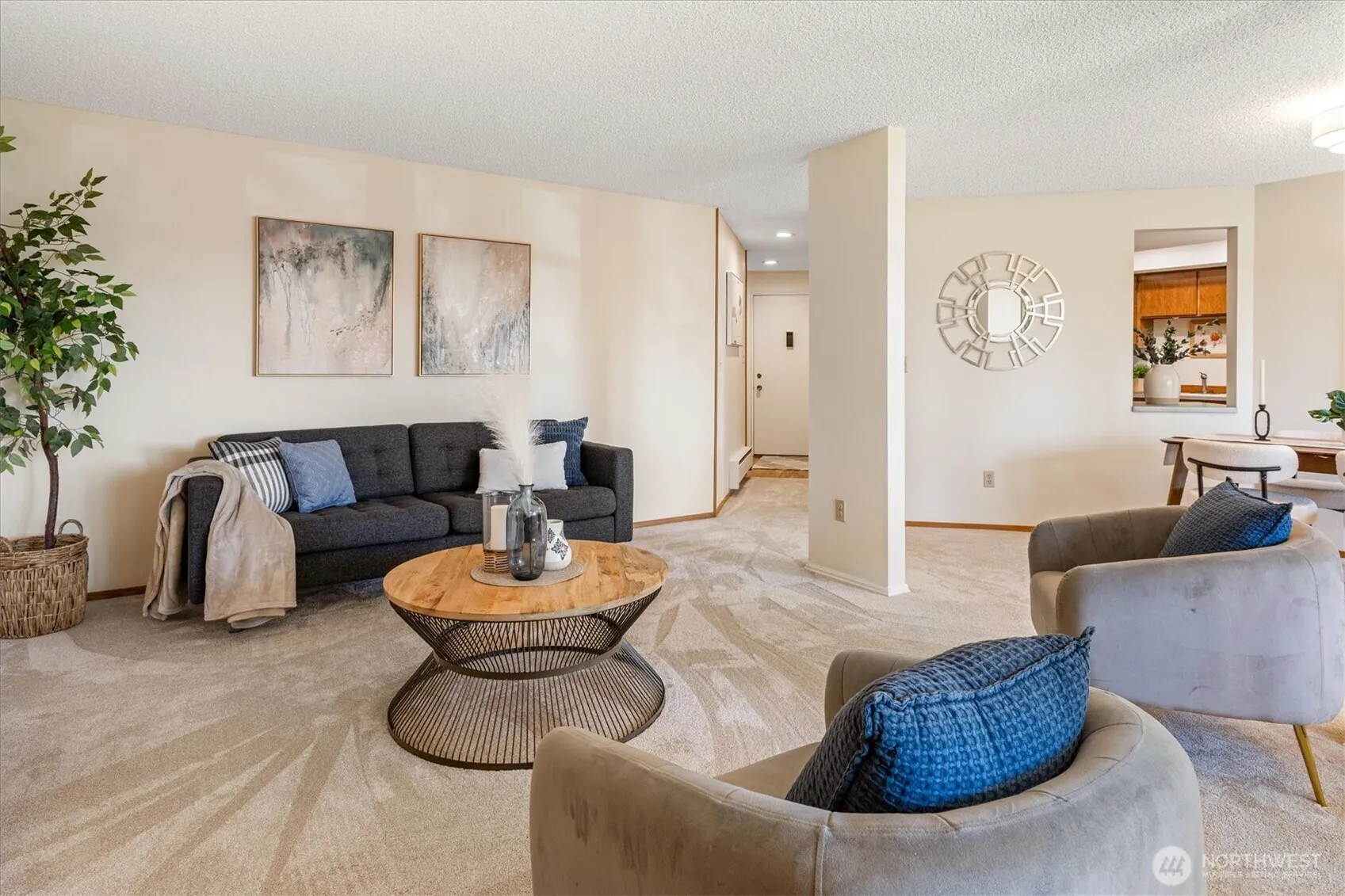 Immaculate ground floor Condo in Lake Ballinger Estates! Fresh paint, carpet & lighting. Living room with fireplace & formal dining room with sliders to large private patio, storage & beautiful garden overlooking green lawn, perfect for entertaining. Spacious kitchen with hardwoods, new appliances, lots of cabinets & a pantry. Large laundry room with newer water heater + storage. Lovely Primary Suite with en-suite bath. 1 car carport, plus private storage cabinet & plenty of off-street parking. Complex features beautiful grounds, clubhouse & a pool. Unbeatable location- walk to Light Rail & Transit Stations. Lake Ballinger across the street & just mere minutes to shopping, pubs & eateries! Centrally located for both North & South commute.