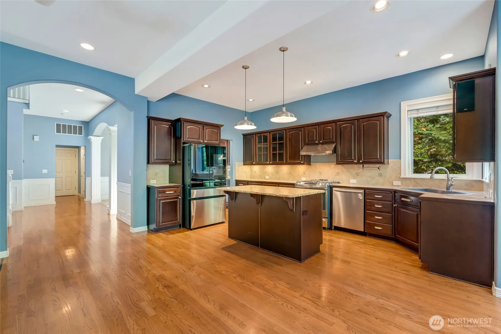 Welcome to this beautifully maintained Maple Valley home! Soaring 10-ft ceilings and expansive windows fill the open-concept living space with natural light. The remodeled primary suite features a spa-inspired bath with dual vanities, soaking tub, and double-head shower. Recent updates include a new roof and gutters, new water heater, fresh interior paint, custom office cabinetry, and new washer, dryer, and refrigerator. Smart features include surround sound, mesh WiFi, and a full security camera system. The 3-car garage offers custom floors and a 50-amp RV plug. Step outside to a gorgeous backyard with space to garden, entertain, or simply unwind. Situated on a spacious lot with ample parking in a desirable Maple Valley location.