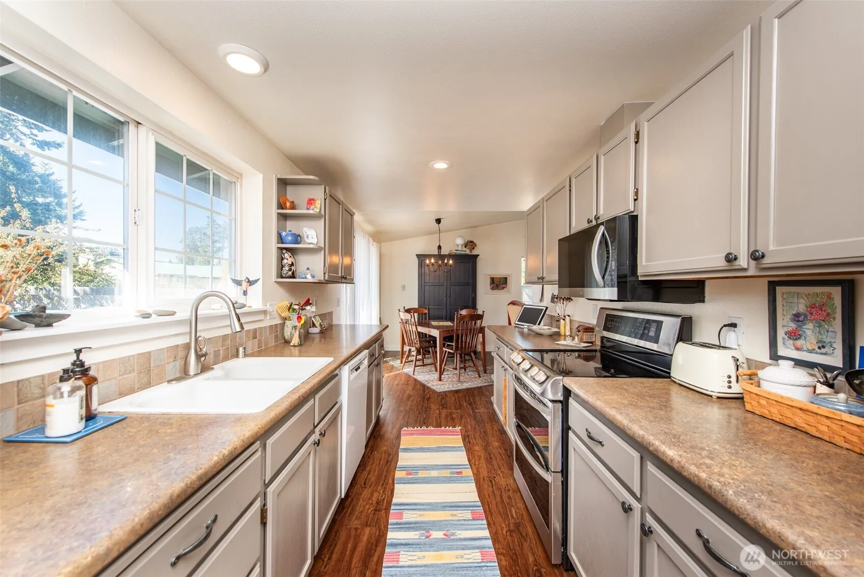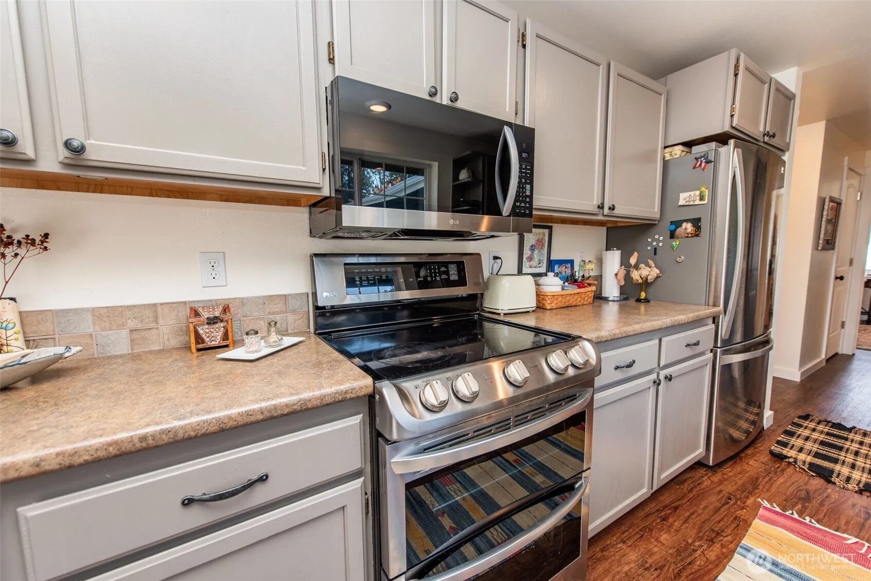 This is a comfortable 3 bedroom home with 2 full bathrooms on a corner lot on a section of Thomas Street that does not go through in either direction. There’s very little traffic in this quiet, centrally located neighborhood of nice homes surrounded by tall trees. The 2 car garage has a 50amp EV outlet for charging electric vehicles. A large deck off the kitchen over looks the fully fenced back yard with a fire pit, and raised bed planters. The home is freshly painted and the front yard is nicely landscaped. The home was updated in 2020 with new luxury vinyl plank flooring, along with a new range, refrigerator, washer/dryer and new vanities in the bathrooms. The microwave was replaced this year. This house is ready to be your new home.