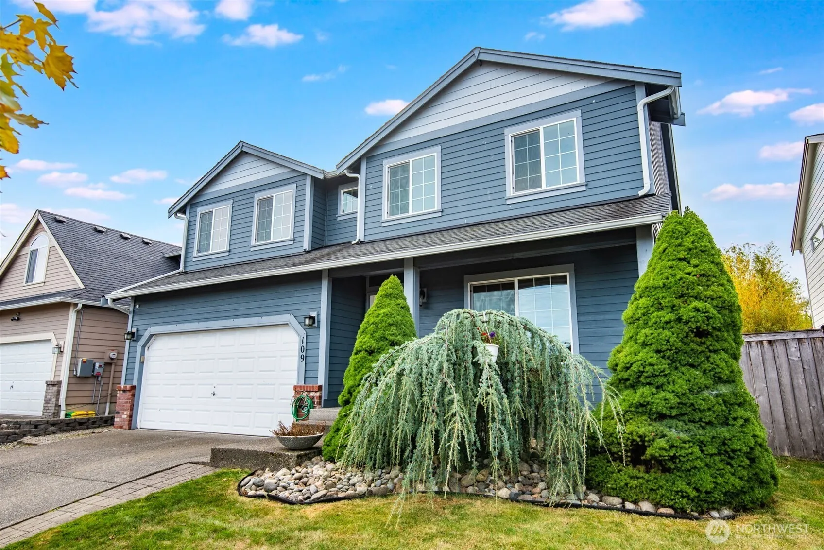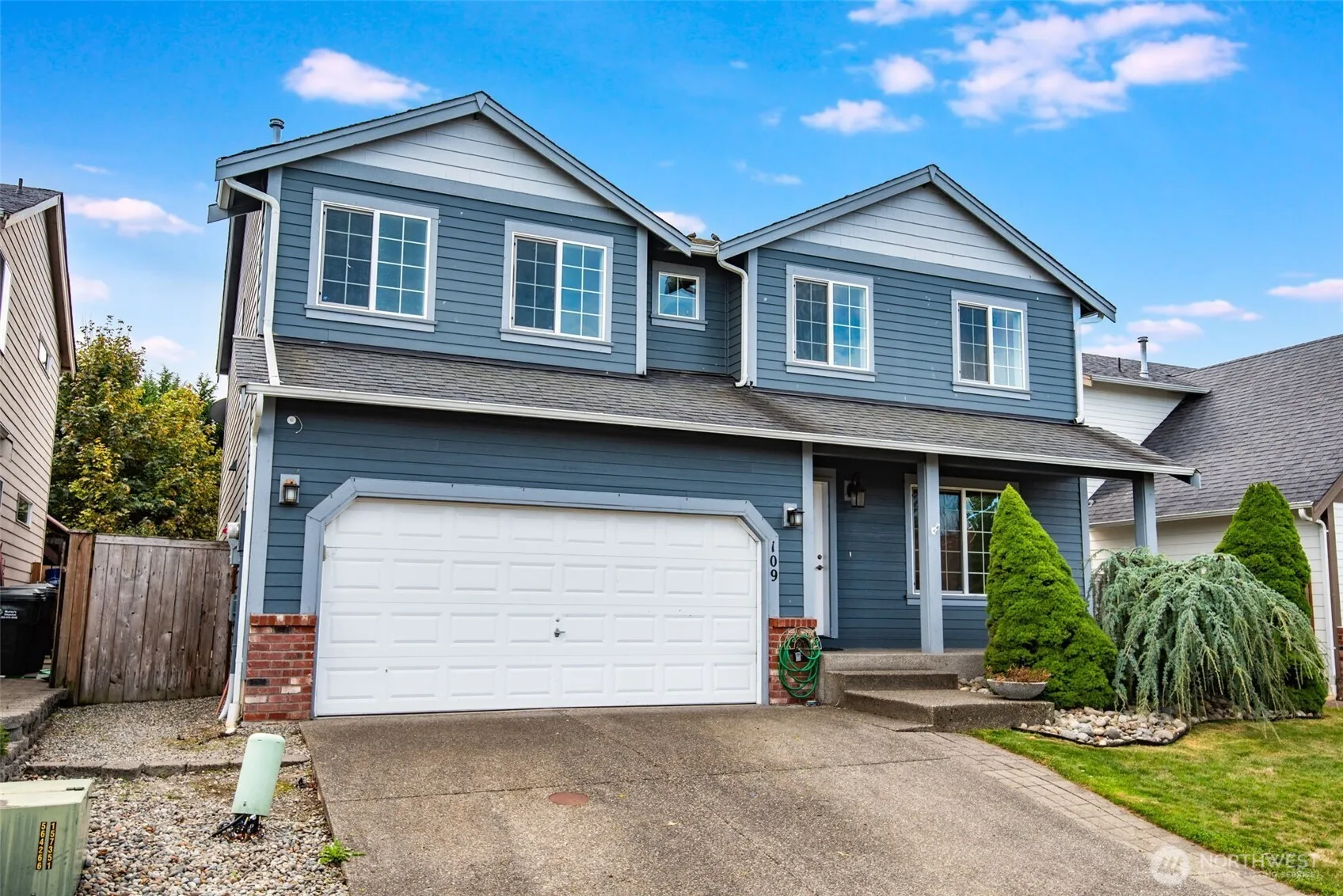 Welcome to Hidden Lakes in Orting! This 4-bedroom, 2.5-bath home offers an open concept floor plan designed for modern living. Fresh interior paint and brand-new carpet make it move-in ready, while solar panels provide energy efficiency and cost savings. The spacious kitchen flows seamlessly into the dining and living areas, perfect for entertaining. Upstairs, the primary suite features a private bath and walk-in closet. Enjoy the outdoors year-round with a covered back patio with ceiling fan and fenced yard. Located in a desirable community with parks, walking paths, and close access to the river, this home combines comfort, sustainability, and a great community. Minutes to downtown Orting shopping and schools.