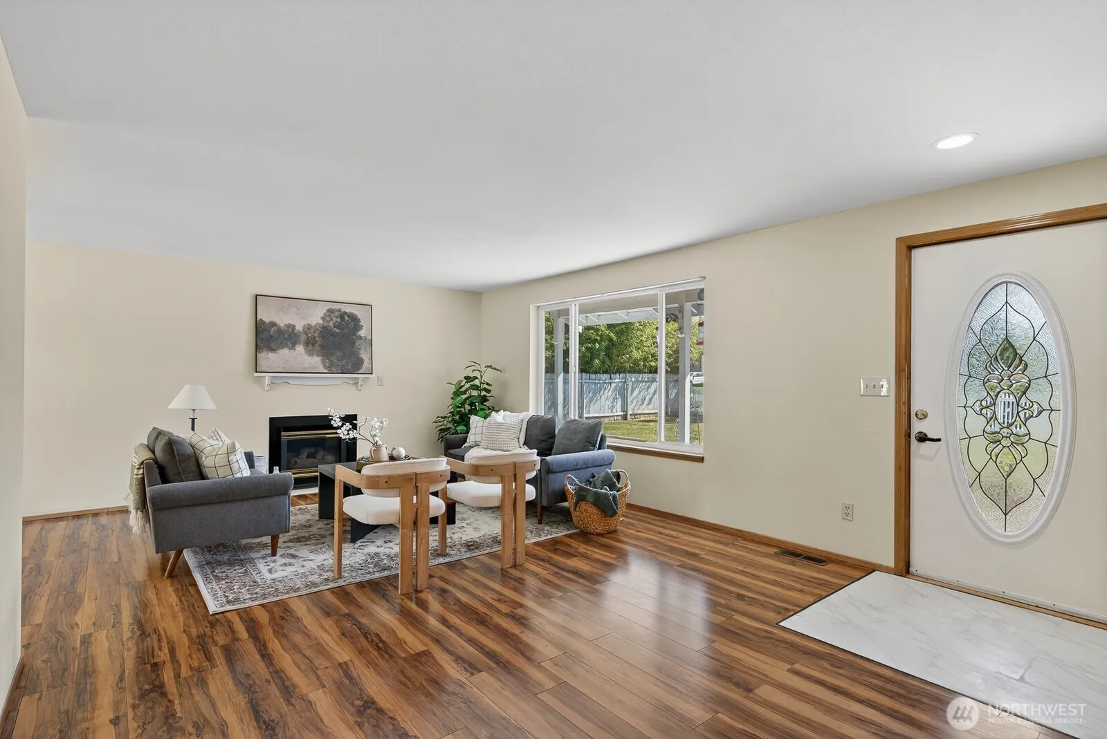 Nestled in a desirable west side neighborhood, this darling one-level rambler offers comfort and ease of living. The spacious living room is filled with natural light and a cozy fireplace, flowing seamlessly into the dining area and generously sized kitchen with abundant storage, ample work space, and an eat-at peninsula. The primary bedroom features a walk-in closet and own ¾ bath, with two additional bedrooms and a full bath completing the layout. A convenient laundry/mudroom connects the home to the two-car garage. Outside, a backyard patio, covered front porch and a sunny private yard that wraps around the home—perfect for gardening, entertaining, or simply enjoying peaceful surroundings. A wonderful home ready for new memories!