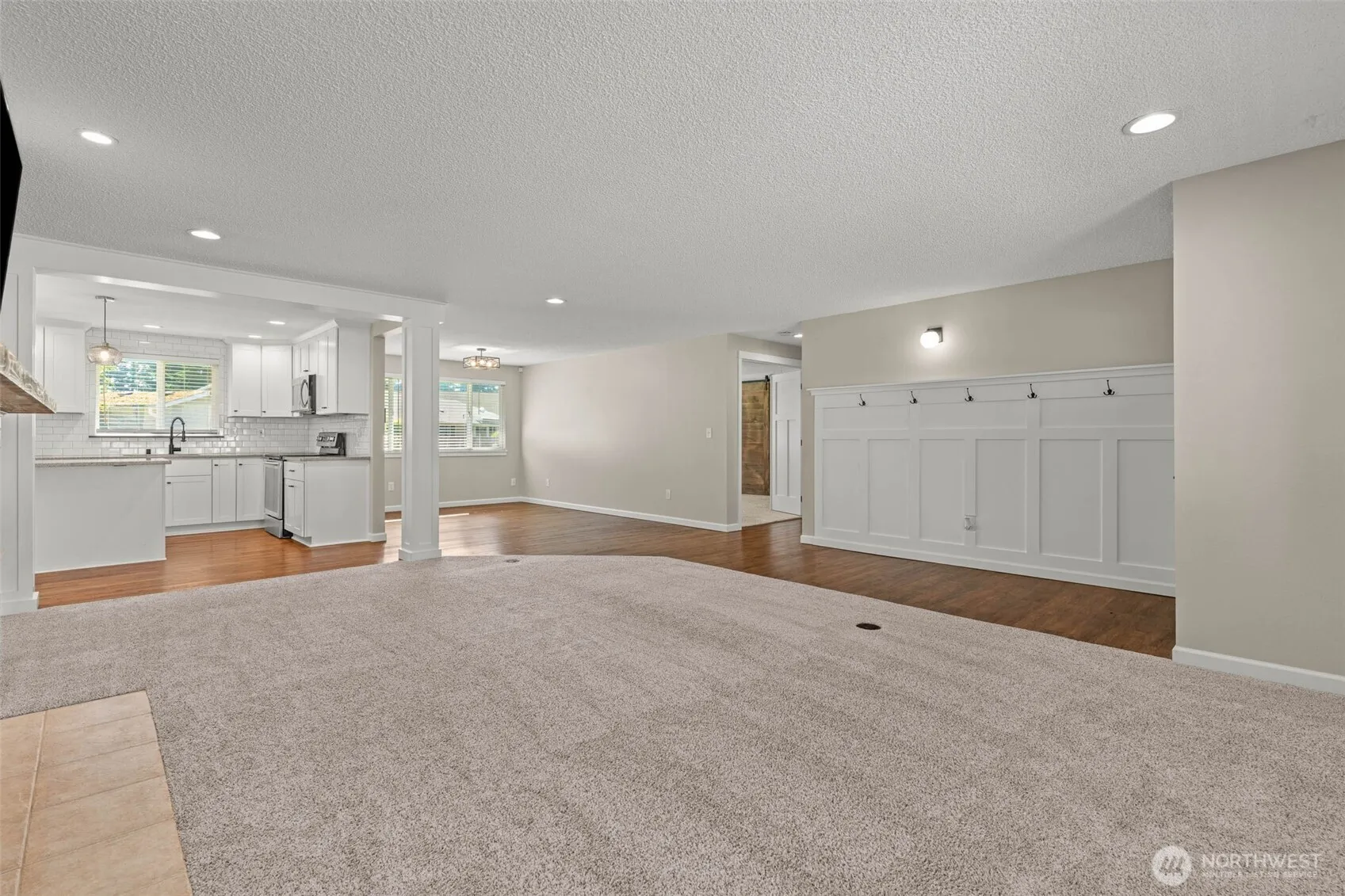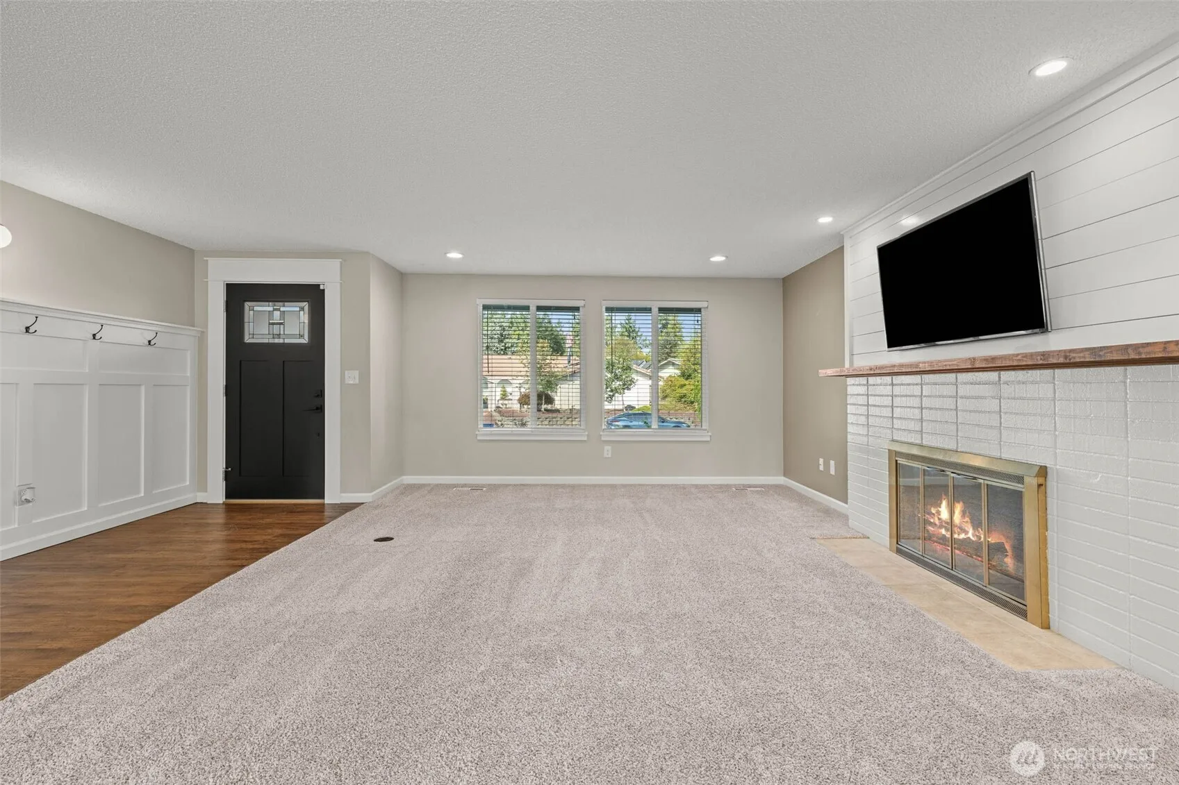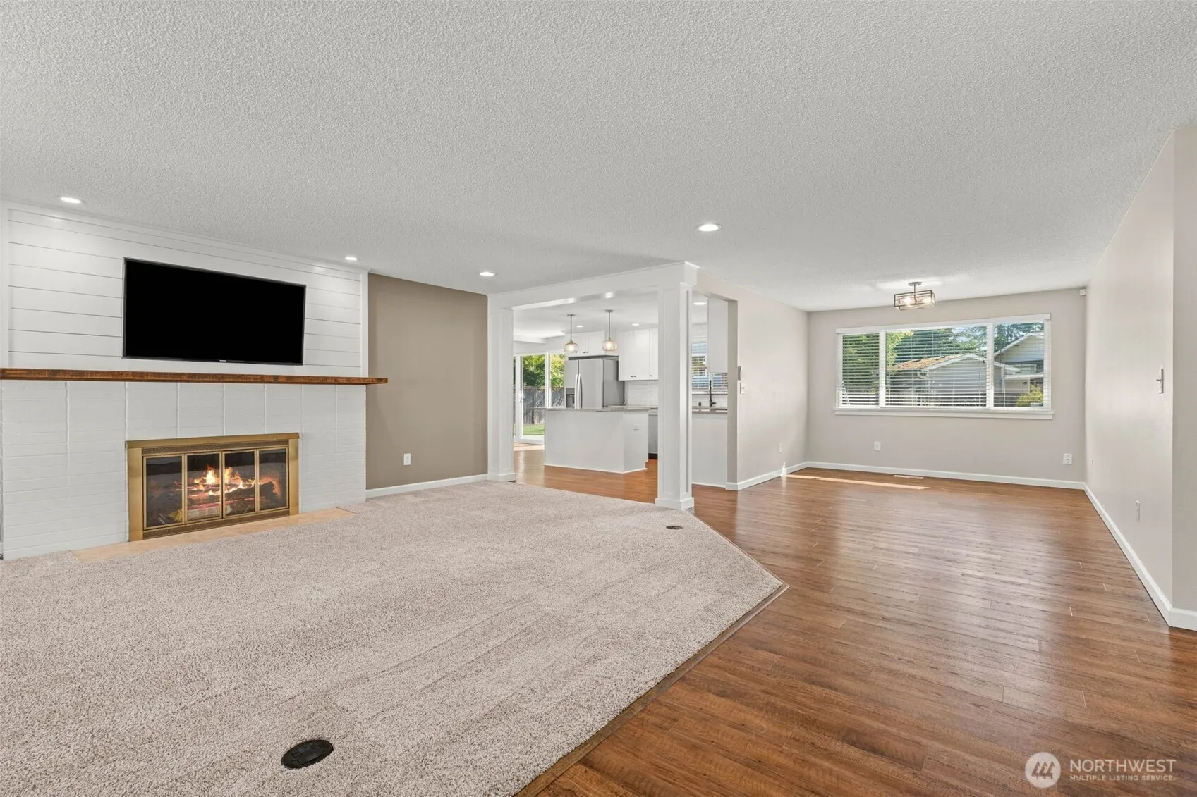 Must see! Beautifully updated rambler in the Oakbrook Golf Course community! This home showcases a stunning kitchen with quartz countertops, subway tile backsplash, stainless appliances, and a large island. Bright white cabinetry and millwork flow throughout, paired with stylish baths including a double vanity. Flexible floor plan with room to relax, work, and entertain, anchored by a cozy fireplace and tasteful updates. The level lot offers a fully fenced backyard with mature landscaping, sprinkler system, an elevated playhouse with slide and swings, plus a gazebo with slab and wiring ready for a hot tub. Ample parking includes a two-car garage and side space for a boat or trailer. Prime location near golf, parks, and Lakewood amenities!