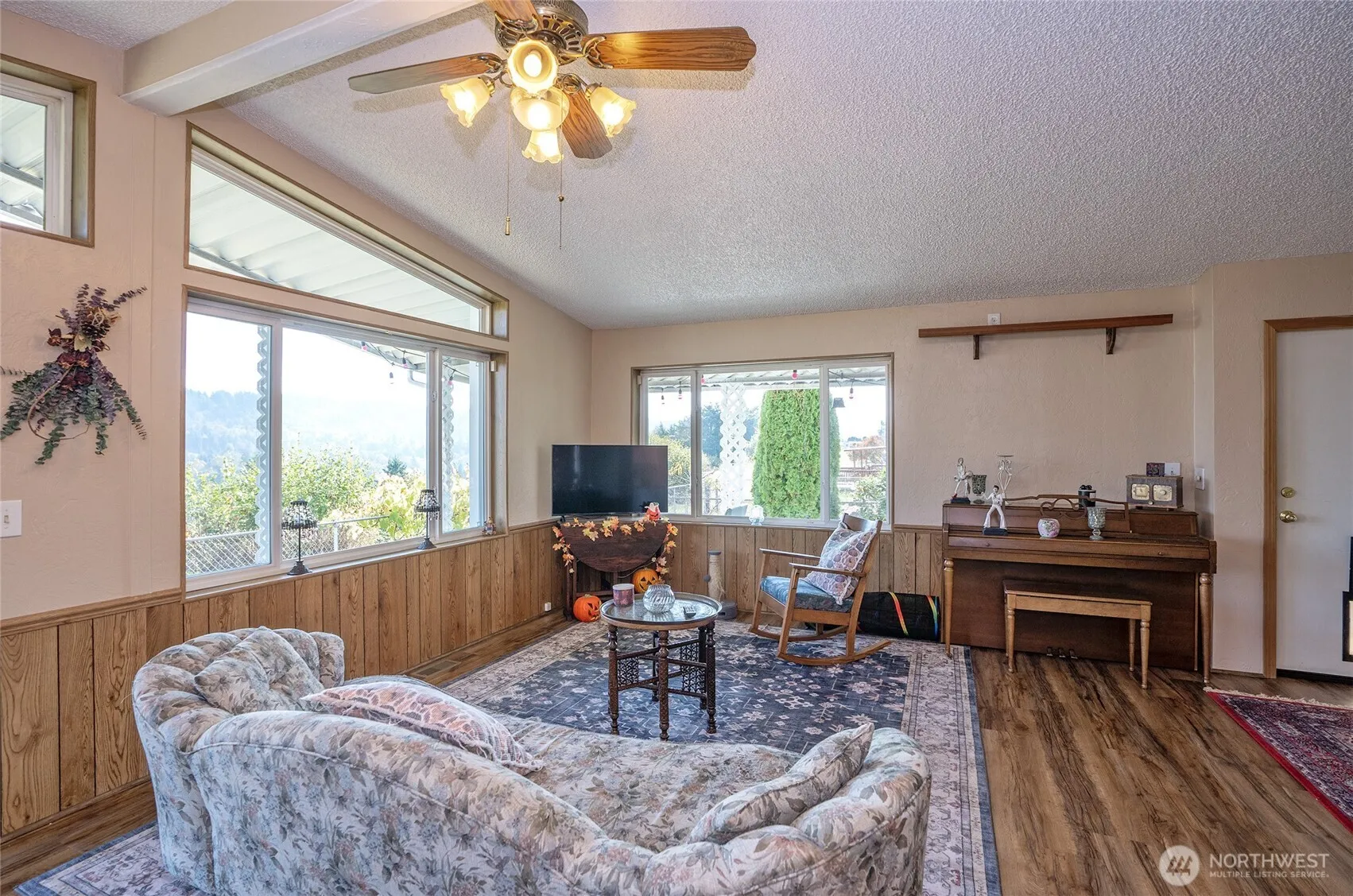 Discover wide-open outdoor space, and breathtaking MT RAINIER VIEWS in this immaculate 2-bedroom, 1.75-bath home. Sunlight fills every room, highlighting the spacious layout and inviting atmosphere. The modern kitchen boasts gorgeous cabinetry and sleek SS appliances. The huge primary bedroom offers room for a cozy sitting area, and is complimented by an ensuite bath. Take in the breathtaking surroundings right from your living spaces! Generous carport featuring a powered shop and RV plug-in. Inside showcases thoughtful updates including vinyl windows, and easy-care laminate flooring. Step out your front or back door to soak in the gorgeous mountain scenery—this is the perfect home for those who love beauty and space all around them!