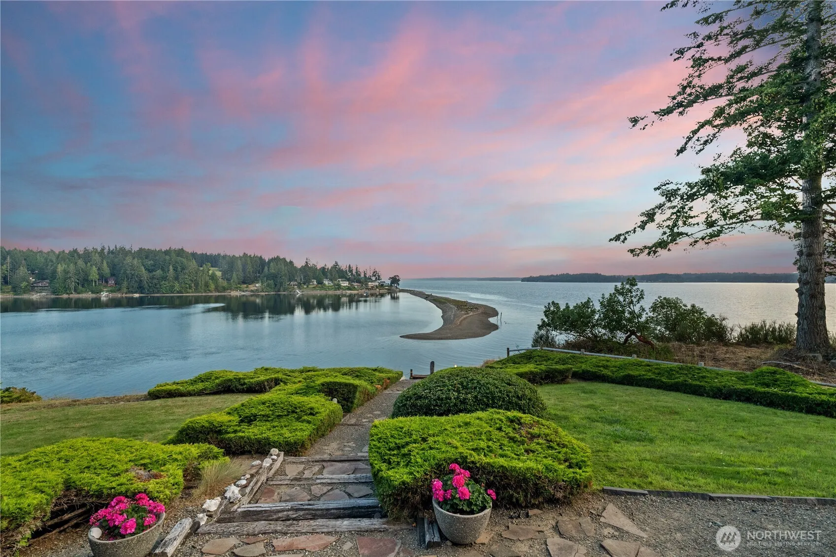 Perched atop the mouth of Vaughn Bay with over 100-feet of waterfront this luxurious property offers the ideal PNW getaway. Main house faces south with unobstructed 180-degree views of the bay and South Puget Sound. Hardwood flooring, wood wrapped windows, soaring ceiling entry and European style chefs kitchen. Entertain guests in the expansive living room with fireplace and custom wet bar. Well appointed guest house sits above the 3-car detached garage. Large patio creates a perfect setting for outdoor dining and enjoying incredible sunsets. Wide path meanders down to rec area above the bulkhead, perfect for storing kayaks and water toys. Tidelands with shellfish, 20-minutes from Gig Harbor, gated entry, dog run and boat launch nearby!