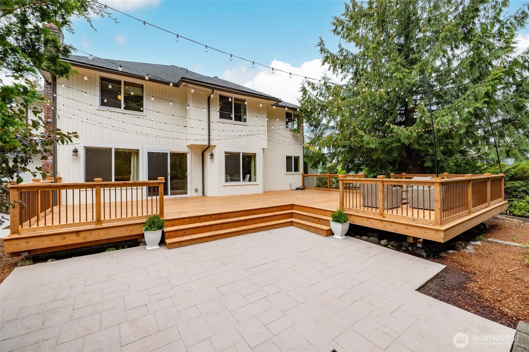 Situated on large, level 1/3 acre lot on a street of well-kept homes, this spacious 2668/sf updated & remodeled 4 bed/2.5 bath features a host of upgrades: New engineered hardwood & carpet throughout, updated kitchen w/quartz counters, stainless appliances, pantry, 1/2bath w/quartz counters, new fixtures. Main floor office. Laundry w/utility sink. Primary retreat w/walk-in closet, gorgeous new tile & marble ensuite w/double vanity, deep soaking tub, huge shower. Three generously-sized guest bedrooms. Full guest bath. All bedrooms have California Closet systems & fans. Outside, a new 600+/sf cedar deck, paver patio, cafe string lighting & fenced yard make outdoor living & entertaining a joy. Garden shed. Three car garage, plus RV parking.