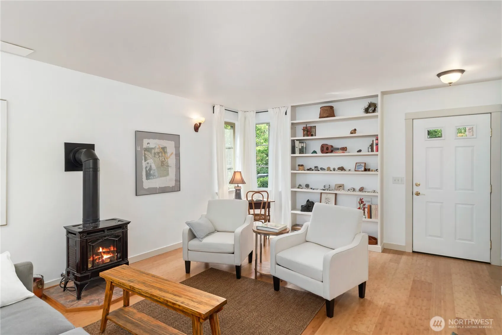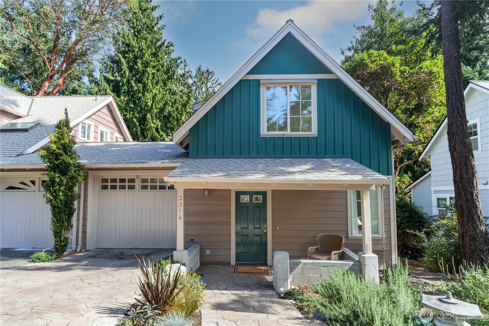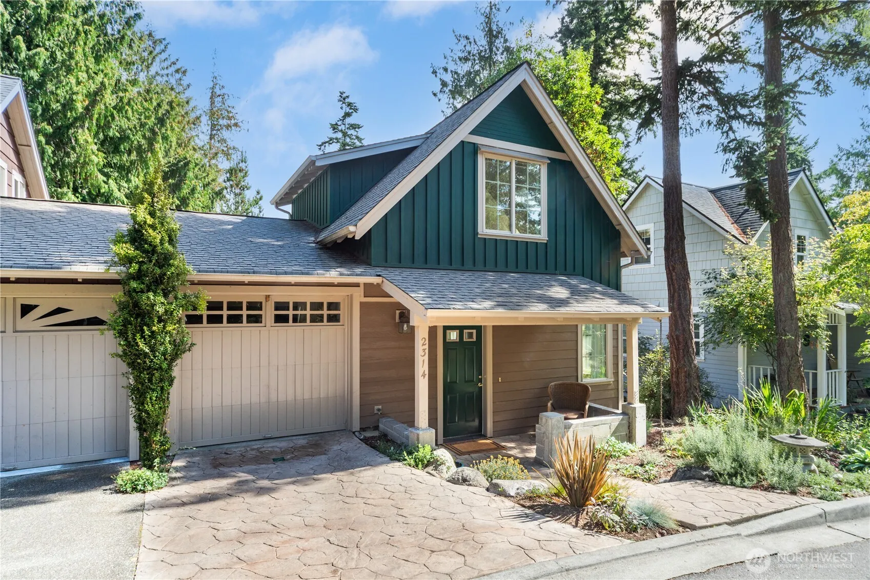 This sweet Craftsman cottage in the Treehouse neighborhood is ready for you. The main floor has bamboo floors, a gas-logs stove, a large built-in bookcase, a ½ bath, and a U-shaped kitchen with a gas range. The DR door leads to a lovely and rare patio in Treehouse—Greenbelt in the back. Upstairs there are two bedrooms, two large closets & a full bath with the W/D. Condo dues of $215.50/month cover water, sewer, and common space maintenance. Pets are allowed. Private garage with built-in shelves. Close to Fort Worden, beaches, hiking trails, and minutes from historic Port Townsend. Plants around the house have been carefully chosen and have drip irrigation on timers. Easy to show. Don’t miss out on this charming place in a super location.