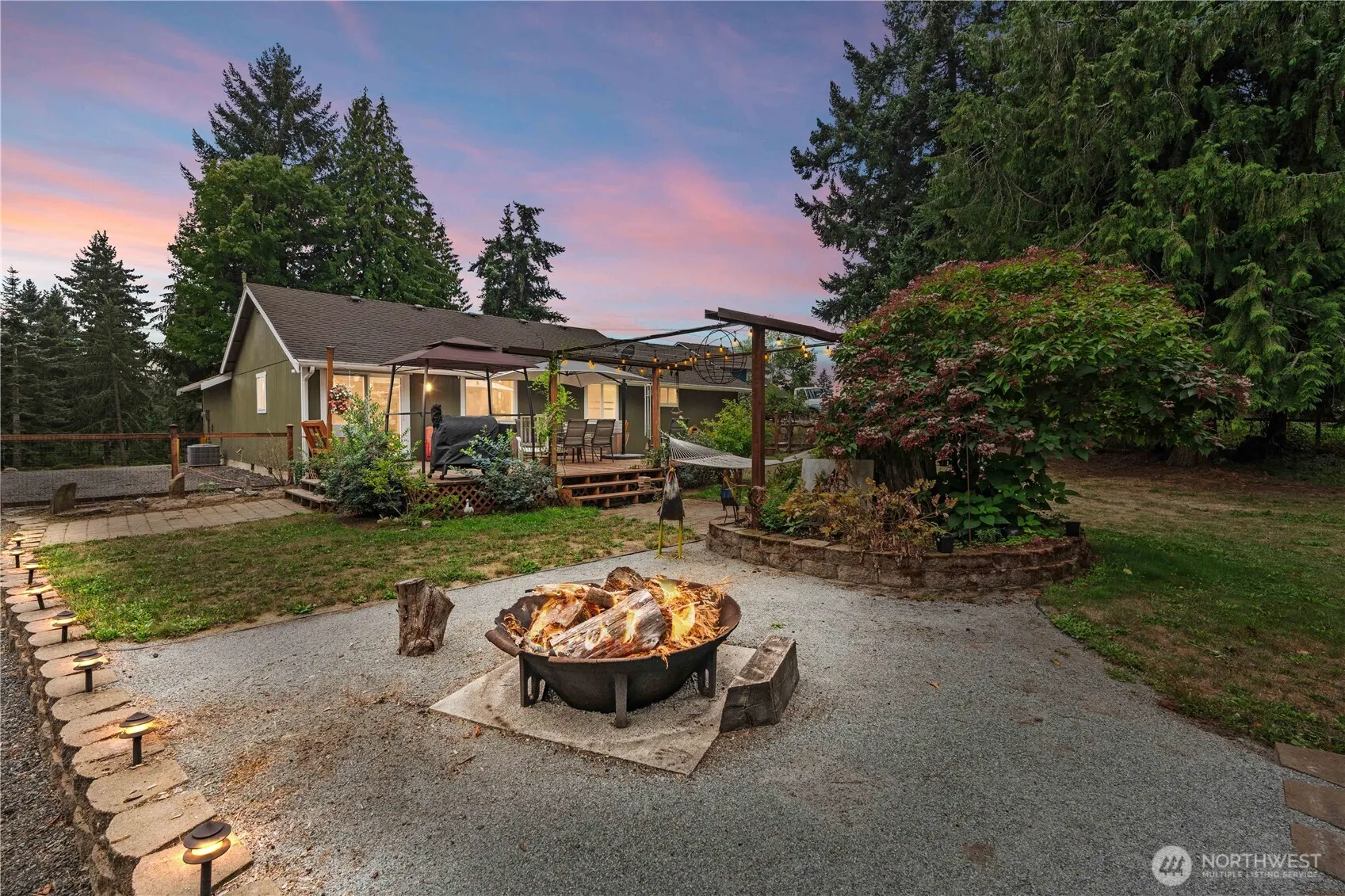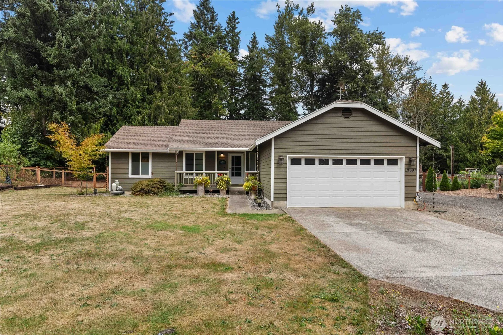 3/2 RAMBLER on NEARLY AN ACRE w/1440 sqft SHOP! This amazing property has everything you’ve been looking for & more! Backing to a greenbelt, BL HS is behind the house. Private & Quiet Neighborhood of Homes that rarely hit the Market due to their lot sizes & location. Updates that you need including White Kitchen Cabinets w/Quartz Counters & Subway Tile Backsplash, S/S & Black Appliances, Laminate Floors & Updated Bathrooms. Roof is approx 7 years old. Exterior Paint 6/2024. Primary Bdrm w/En Suite Bath + Walk-In Closet. Huge Back Deck, Paver Patio, Firepit, Designated Garden Space, Fruit Trees, Blueberries, Flowers, Goat/Dog Run & RV Parking & Hookup. Create your own Mini-Farm & relax knowing that you’re close to whatever you need!