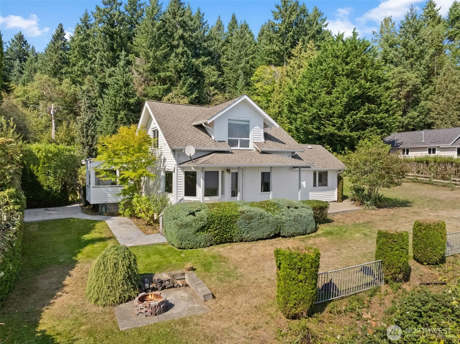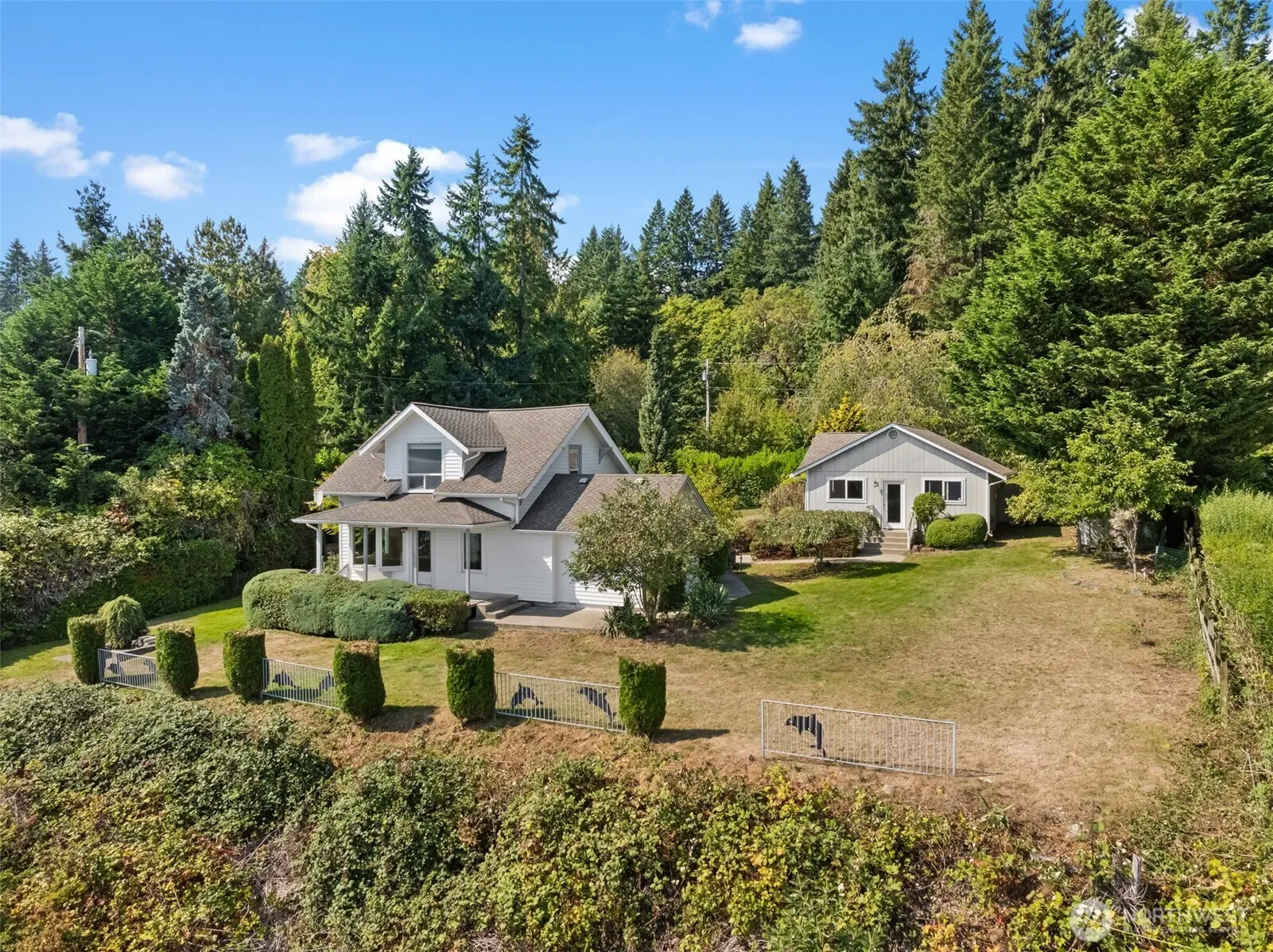 AS-IS SALE | Panoramic Water & Mountain Views This 3-bedroom home is a blank canvas ready for your vision. Every room takes in the view of Colvos passage & Mt. Rainier. Inside features a spacious kitchen with island, sunny eating nook, living room, main floor primary suite, and two bedrooms upstairs. Virtually staged. Utility room with washer/dryer . Outside offers beautiful grounds, a large patio for entertaining, and a detached 2-car garage with storage. Fix it up, add your personal touch, and grow your equity in this stunning location just up the hill from Olalla Bay Market.