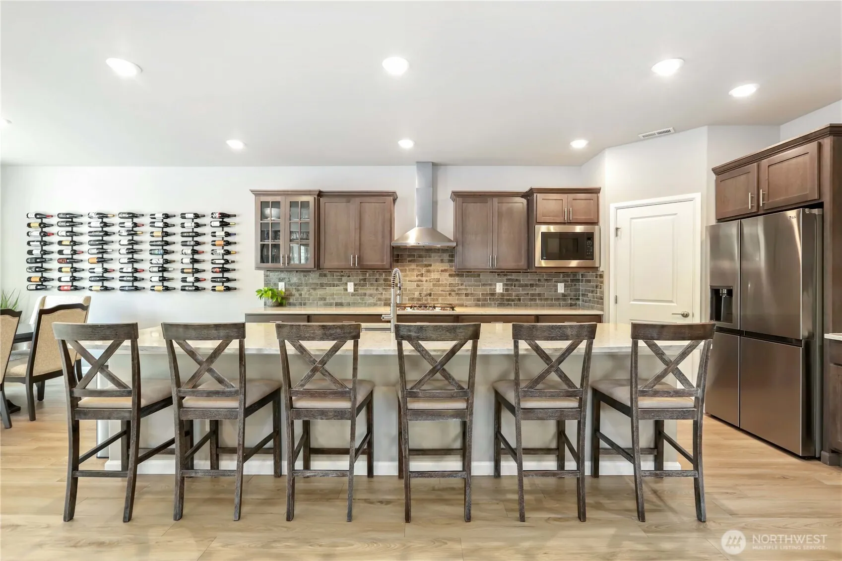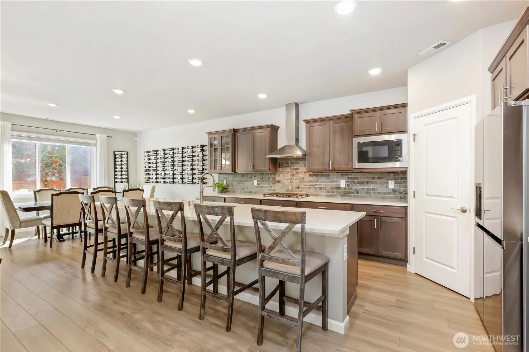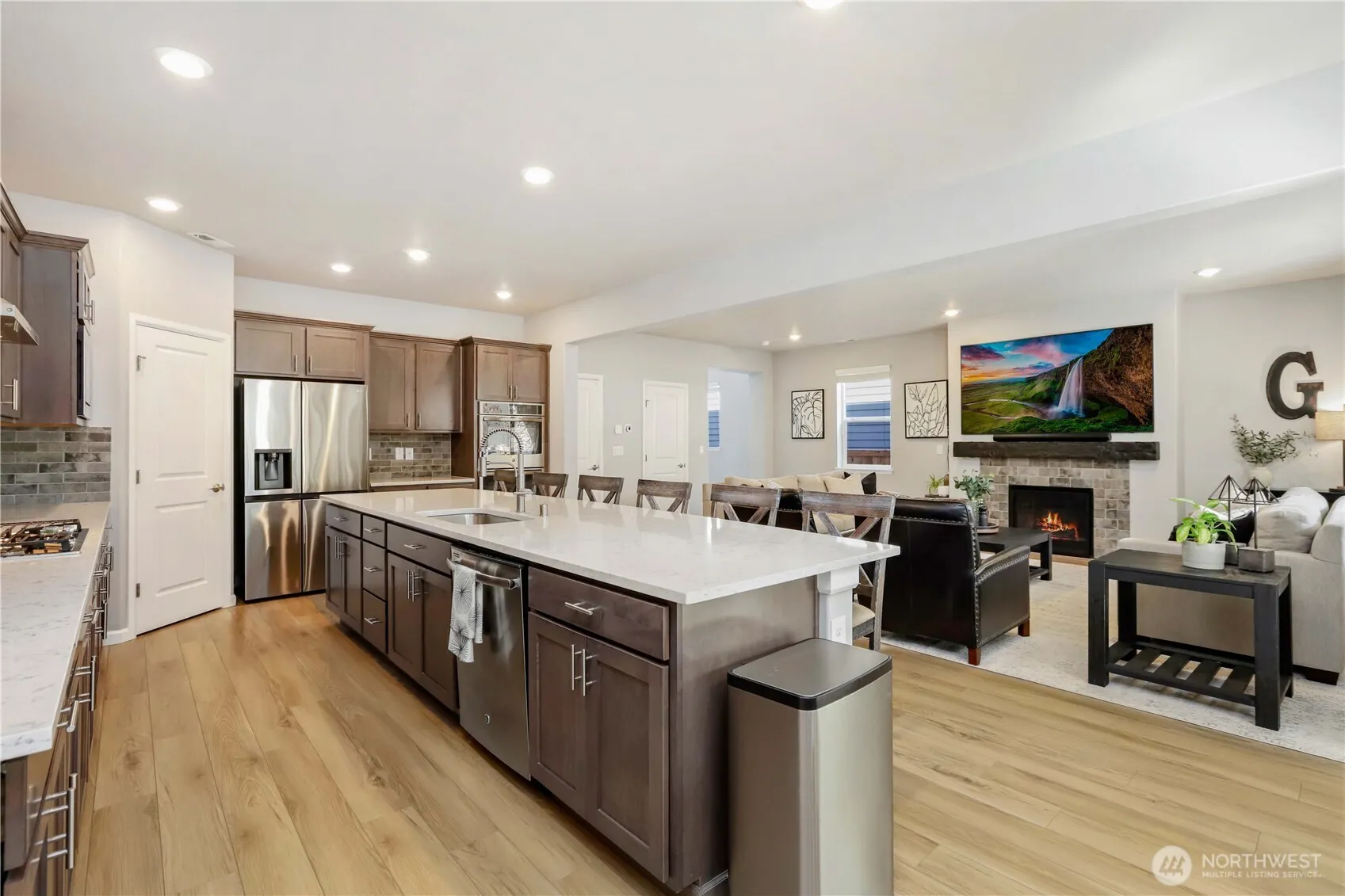 Modern design meets everyday ease in this light-filled 4 bd home. Expansive windows invite sunshine across the open main floor, where laminate wood floors flow through generous living spaces anchored by a cozy gas FP. The kitchen is a delight w/quartz counters, SS appls, dbl oven, & ample storage. Upstairs offers 4 bd, a versatile loft, & convenient laundry. The primary ste feels like a retreat & spa-inspired ba. New carpet & fresh paint give a like-new feel, while upgrades include a custom mantle, A/C, & energy-efficient gas systems. A covered Trex deck w/gas FP sets the stage for gatherings. Complete w/2-car gar+EV charger, wireless extenders for strong connectivity, & nearby neighborhood park, this home blends comfort & convenience.