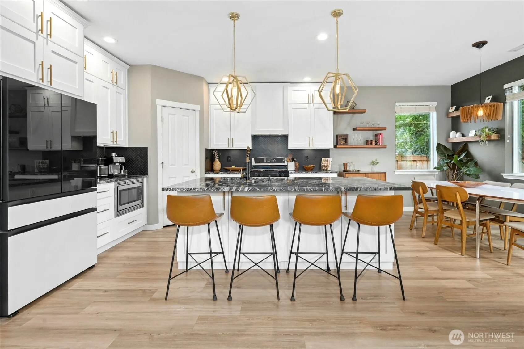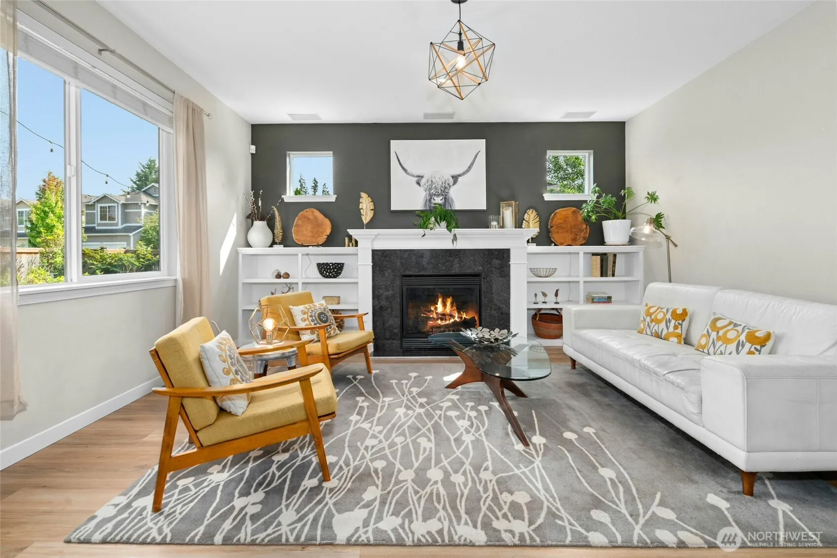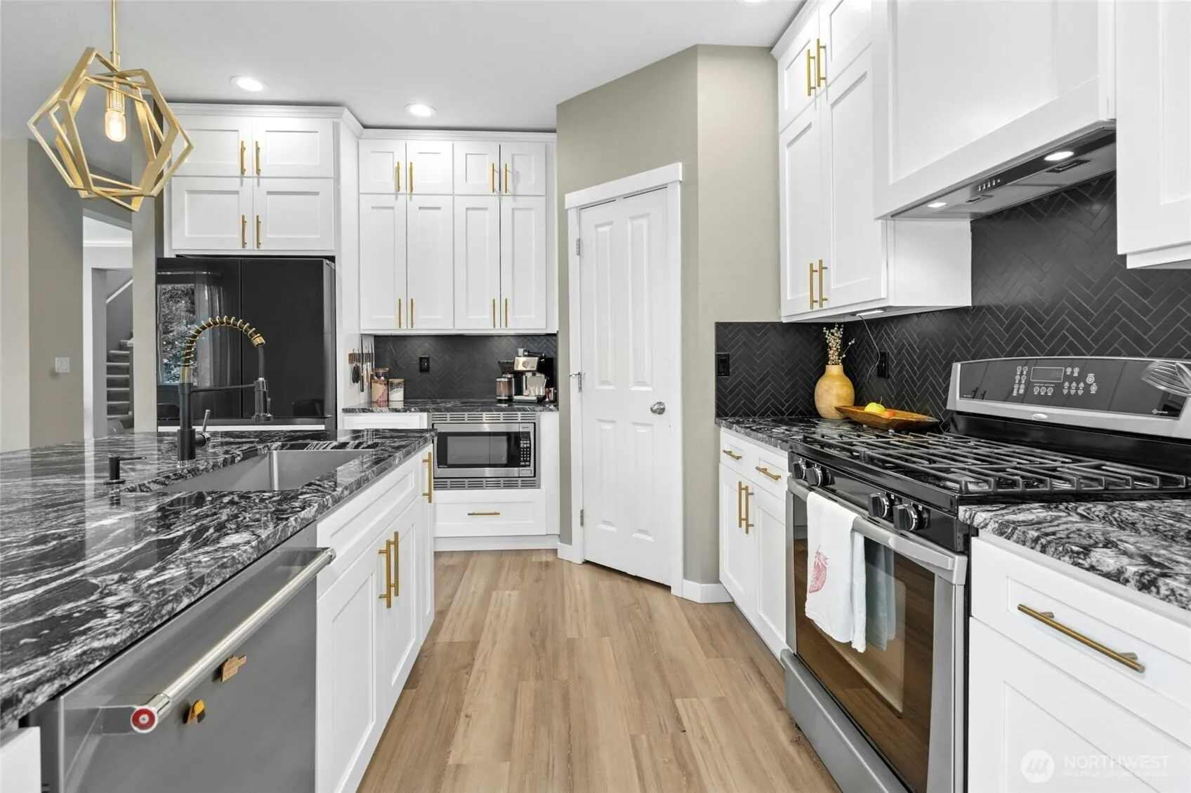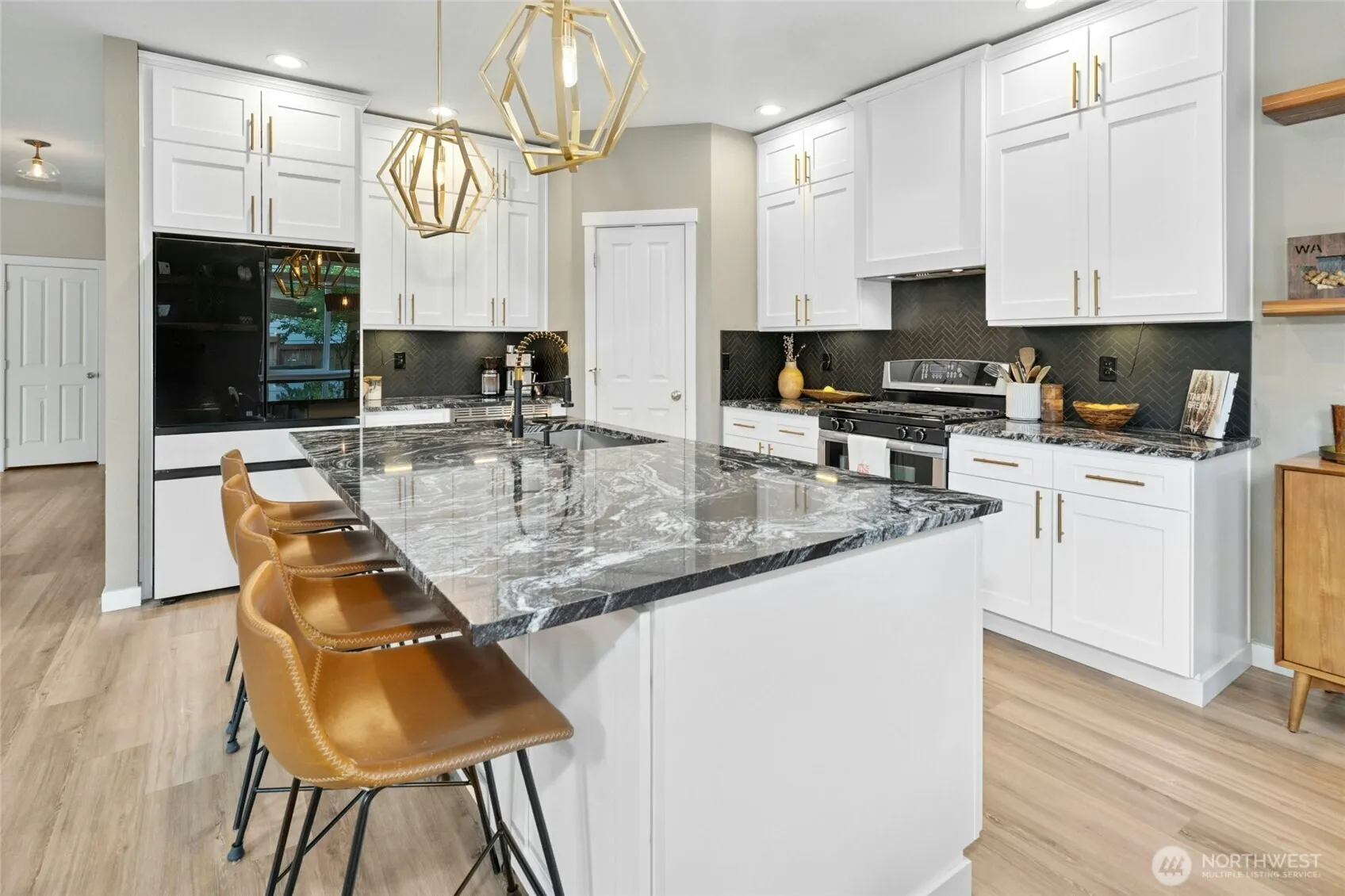 Welcome to this stunning remodeled 4 bed plus den, 2.5 bath home with its sleek & modern kitchen with white cabinets, black matte tile herringbone backsplash, SS appliances, eat-in island & black/white granite counters. Floorplan seamlessly blends indoors & out as you relax in the fully-fenced backyard oasis. Sunbathe on the large deck, gather under the covered patio for BBQ’s & al fresco dining, create memories around the firepit with s’mores or unwind & relax in the hot tub after a long day. Spacious Primary Suite with French doors, large walk-in closet with organized closet systems & gas fireplace. Stay cool with Central A/C. New roof & sprinklers. Beautiful designer paint & touches thru-out. Corner lot with no neighbors on 2 sides