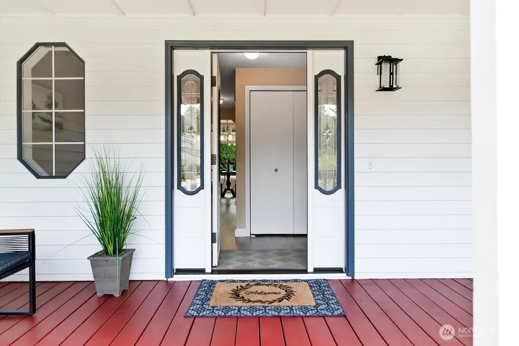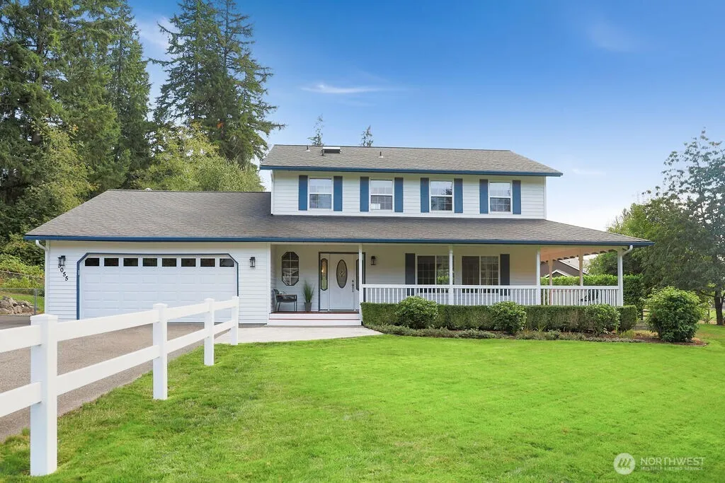 Welcome to this picture perfect Poulsbo retreat on nearly half an acre in the Clear Creek community. With 4 bedrooms, 2.25 baths, and 2,100+ sq ft, this home is filled with natural light from vaulted ceilings, skylights, and large windows. The main floor offers a spacious living room, dining area, and fully upgraded kitchen that opens to a cozy family room with wood stove. French doors lead to a generous deck overlooking your private, park-like yard. Upstairs, the primary suite features a walk-in closet and private upgraded bath, with three more bedrooms for guests or hobbies. Updates include vinyl plank flooring, fresh finishes, 2 heat pumps with A/C. Enjoy fruit trees, hot tub, RV parking, and cul-de-sac location minutes from town.