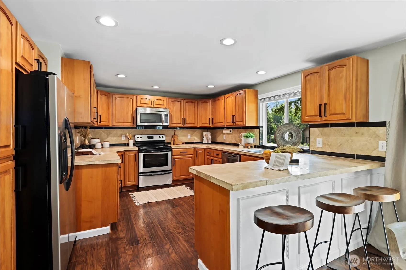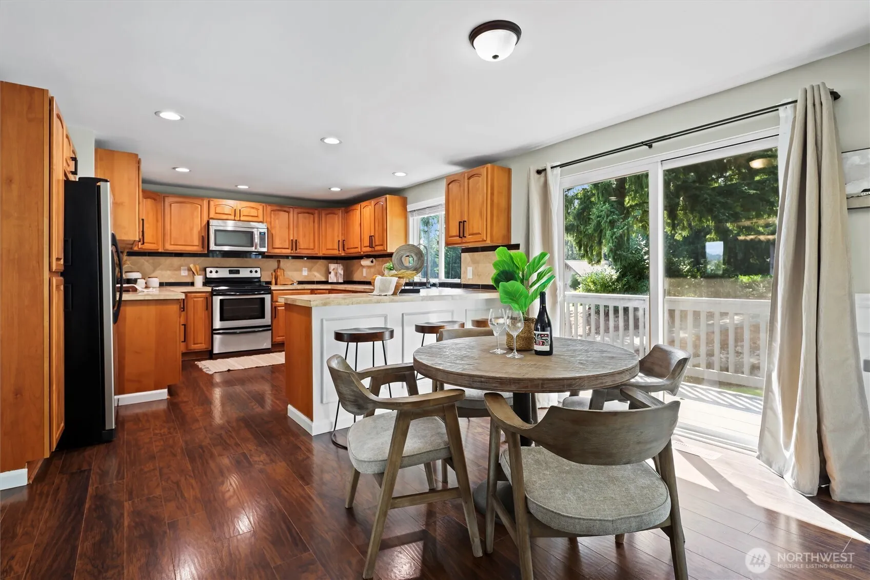 Spacious, fully fenced & gated view home on nearly 1.5 acres, just 30 min to Microsoft & Meta! 3bd/2.75ba w/ dual heat-pump A/C, perched on a quiet dead-end street w/ sweeping views of Snoqualmie Valley, Cascades & Mt. Rainier. Expansive 700 sq. ft. deck, or take in the views from nearly every room. Fresh paint, remodeled lower level w/ new floors, doors, built-ins, cabinets, vanity & laundry sink. Kitchen w/ limestone counters, stainless appliances & full-height backsplash. Primary suite w/ custom closets & 5-pc ensuite. Large rec & flex space, EV charger, sprinklers in front yard.