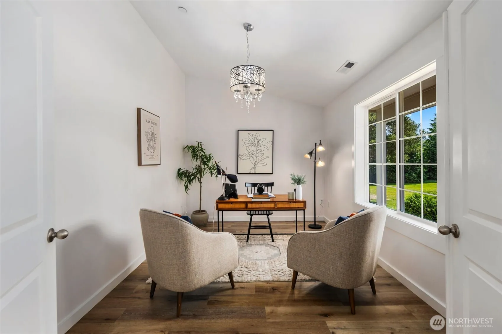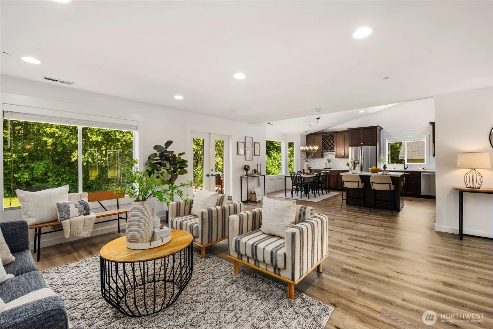 Nestled on nearly 2 acres of flat, gently rolling land, this retreat offers privacy, space, & room to grow. A backyard playground, oversized deck for entertaining, RV parking, & 400 sq ft shed—perfect for lawn gear or workshop—make outdoor living easy. Out front, a sun-filled pasture-like yard is ideal for play or gardens. Inside, vaulted ceilings highlight the open layout with a spacious kitchen & office that flexes as a 4th bedroom. The main-level primary suite includes a walk-in closet & roomy spa-like bath, while upstairs offers two bedrooms, a full bath, & second living space. Even better? Approved plans & permits are ready to add two more rooms, a full bath, covered deck, & 680 sq ft garage! Immaculately maintained, move-in ready!