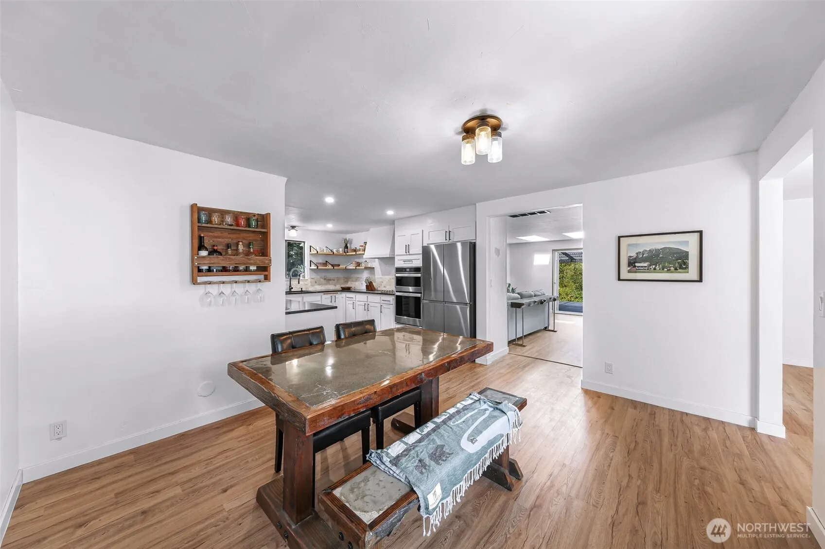 Wonderfully updated single level home on the Samish river. Huge living room with fireplace, skylights, & slider to the large covered back deck. Great back yard is just steps to the river to watch the salmon swim up-river to spawn. Established garden space with watering system, firepit, well cared for landscaping, & newer exterior paint. Open kitchen features new soapstone countertops, open shelving, & stainless steel appliances. Large garage connects to home through oversized utility room with new washer & dryer. Good sized bedrooms and baths with lots of updates throughout including LVP flooring, bathroom updates, new lighting, & A/C! Large lot with room for boat or RV parking on side of home. Come see all this great home has to offer!