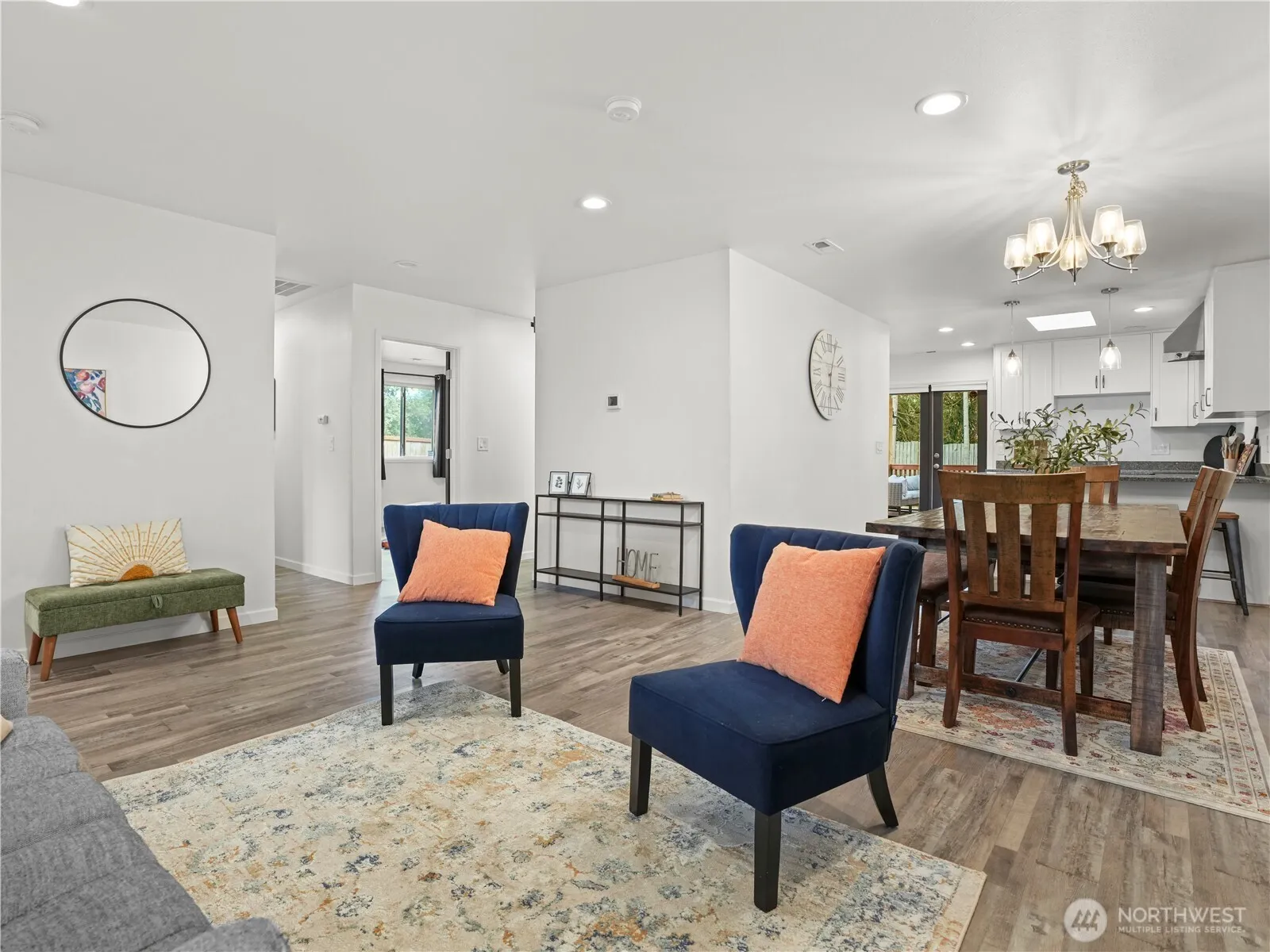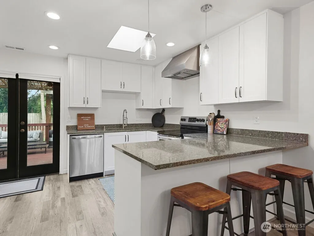 Fully renovated in 2022, this beautifully updated 4-bed, one-level home (in quiet cul-de-sac) combines modern style w/ easy living. At the heart of the home is a stunning kitchen w/ quartz counters & S/S appliances, opening to a bright living area & a huge cozy family room w/ a custom electric fireplace & hidden storage. Skylights & LVP flooring enhance the light-filled interiors, while French doors lead to a covered deck perfect for year-round entertaining. The oversized 770 sq/ft garage has a new EV charger, and the 1/2 bath has plenty room to expand. Brand-new roof (2022) & placement in the highly sought-after Tahoma SD, this home offers both peace of mind and lasting value. *$5,000 credit for using Brian Calvo at All Western Mortgage.*