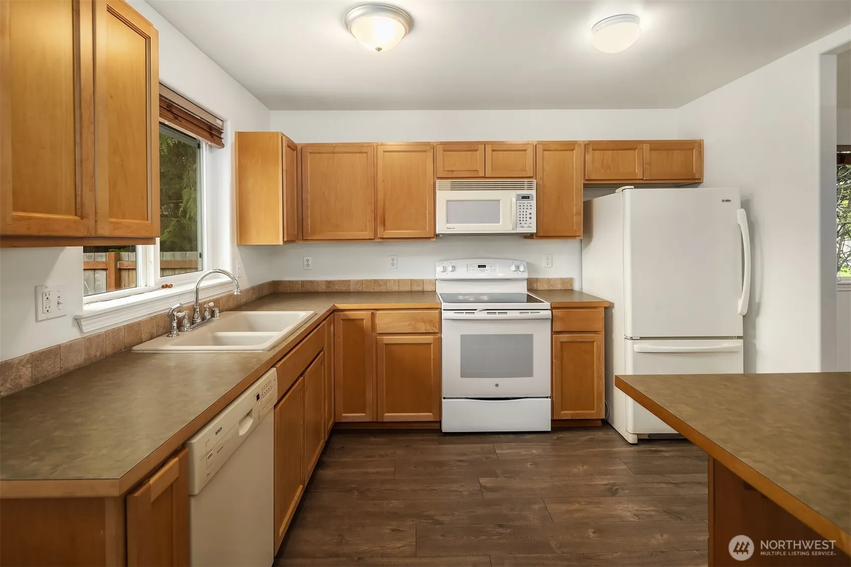 Newer 2005 Craftsman rambler in prime location downtown Monroe just a block from the Skykomish River Park. Very livable with 3 bedrooms, 2 full bathrooms, primary suite features a 9′ walk-in-closet & attached ensuite bath. Floor plan includes both living and dining rooms, plus a full-sized utility room with cabinets. Beautiful engineered wood floors in the kitchen, dining & living areas, plus a gas fireplace. The entire interior was professionally painted and all new carpet installed, ready for move-in. Spacious 2-car garage with room for extra storage. Ideally situated facing South, the fully fenced yard gets sun all day. High quality 10×10 outbuilding was framed in place, not a kit. Newer efficient gas forced-air heat & A/C to keep cool.