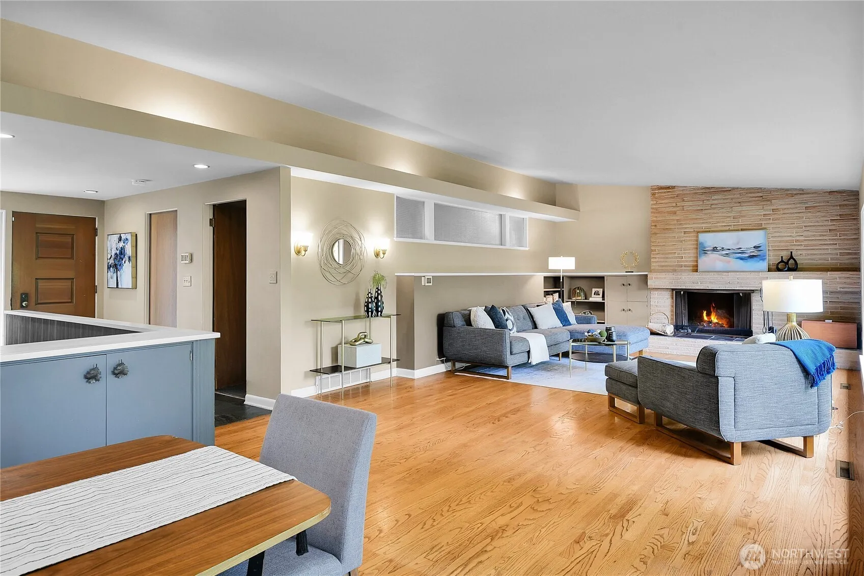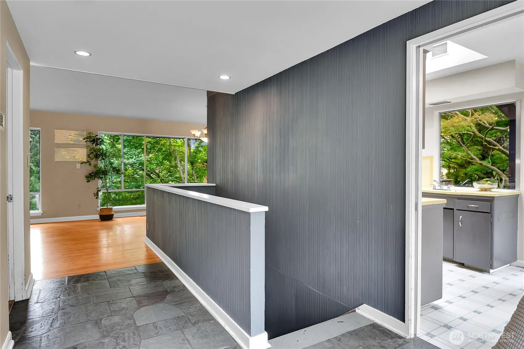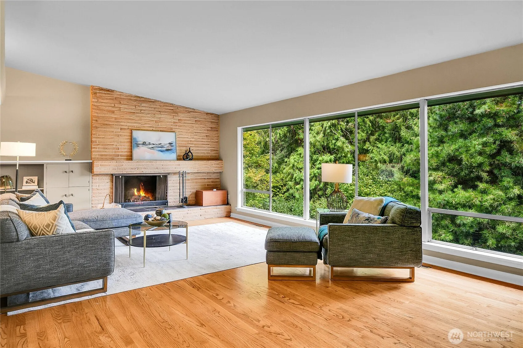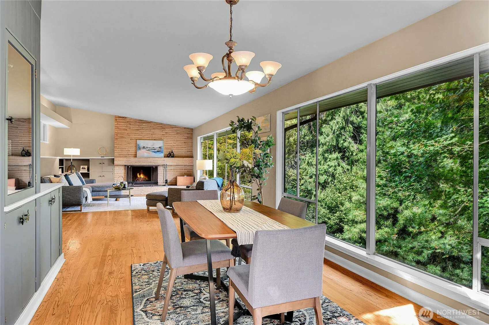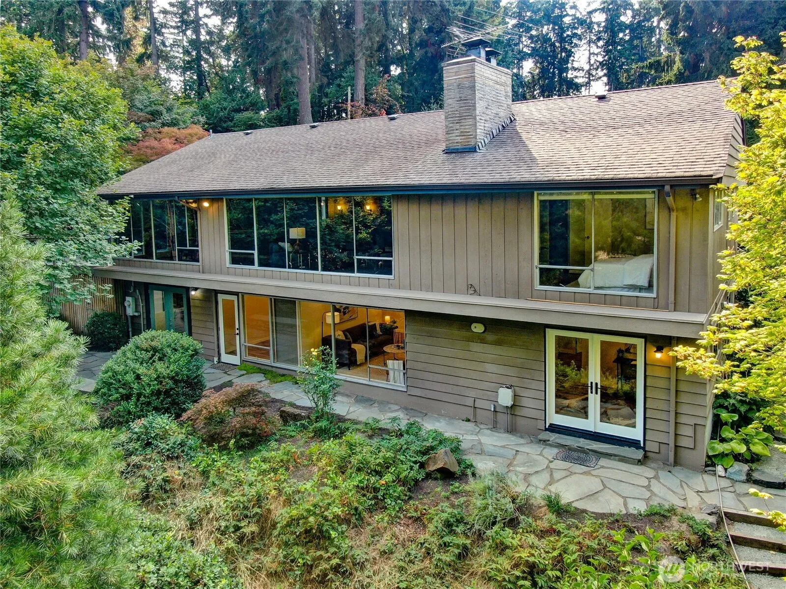 Mid Century Modern retreat in Lake Forest Park – a nature lover’s paradise. Plus daylight basement with ADU, 2 bedrooms, .75 bath, private entrance. Imagine 1954 era as you enter the main level to the breathtaking view of the forest thru floor to ceiling windows across full length of living/dining room. French doors open to entertainment size deck with steps leading to Blue Stone patio and down to lower level outdoor living immersimng yourself in the lush, mature landscaping featuring specimen rhododendrons and a majestic Umbrella Pine. Breezeway from double car garage to kitchen door. 3 bedrooms, 1.5 baths. Close and easy access to schools, transit, Metro Bus on Bothell Way, LFP Towne Center, Animal Acres Park, Burke-Gilman Trail, I-5.