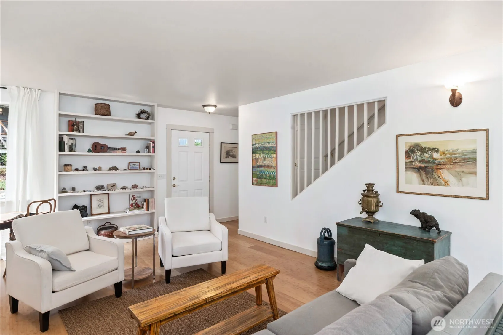 This sweet Craftsman cottage in the Treehouse neighborhood is ready for you. The main floor has bamboo floors, a gas-logs stove, a large built-in bookcase, a ½ bath, and a U-shaped kitchen with a gas range. The DR door leads to a lovely and rare patio in Treehouse—Greenbelt in the back. Upstairs there are two bedrooms, two large closets & a full bath with the W/D. Condo dues of $215.50/month cover water, sewer, and common space maintenance. Pets are allowed. Private garage with built-in shelves. Close to Fort Worden, beaches, hiking trails, and minutes from historic Port Townsend. Plants around the house have been carefully chosen and have drip irrigation on timers. Easy to show. Don’t miss out on this charming place in a super location.