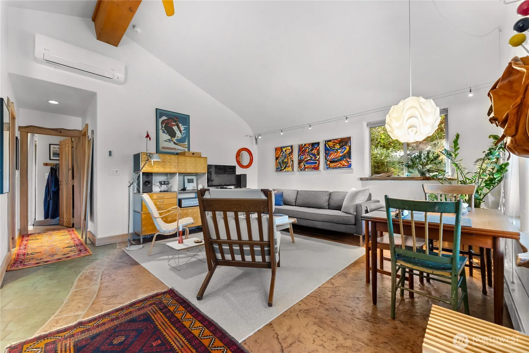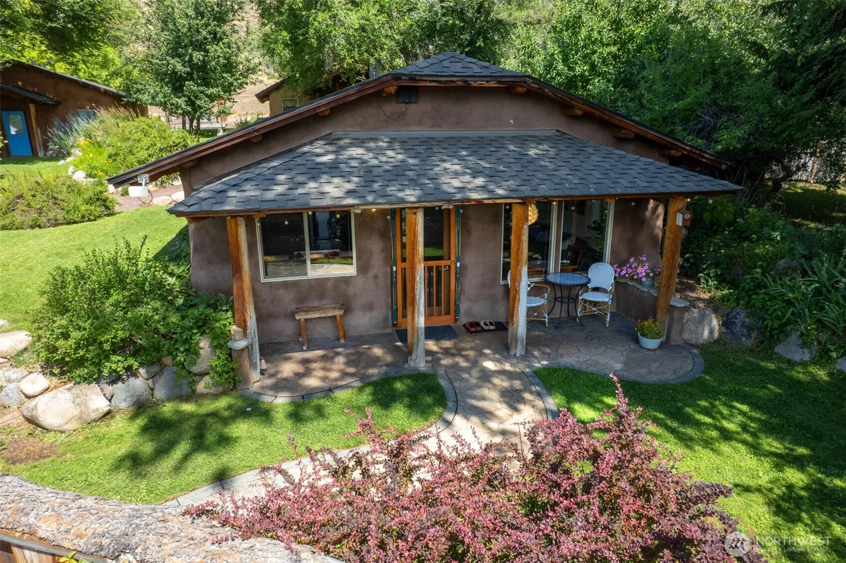 BEAUTIFULLY UPDATED ARTISAN CABIN – Charming 2bd/1ba home w/ an efficient, comfortable layout & timeless custom touches. Designed for easy living inside & out, this cabin blends style w/ practicality. Interior highlights include colored concrete floors, maple cabinets topped w/ elegant Soapstone counters, custom tile tub, blue pine custom doors, & a newly installed mini-split system for year-round comfort. Recent upgrades feature a new architectural shingle composite roof. Enjoy the private covered front porch framed by mature landscaping, or take advantage of the built-in insulated storage shed—complete w/ power & lighting—for all your outdoor gear. Ideally situated just minutes from the Nordic trailhead, the Meadowlark Trail, & downtown.