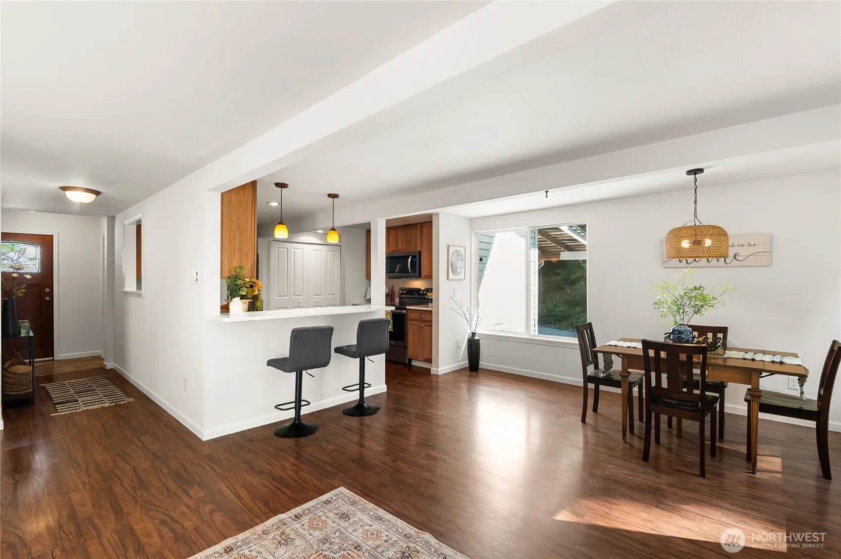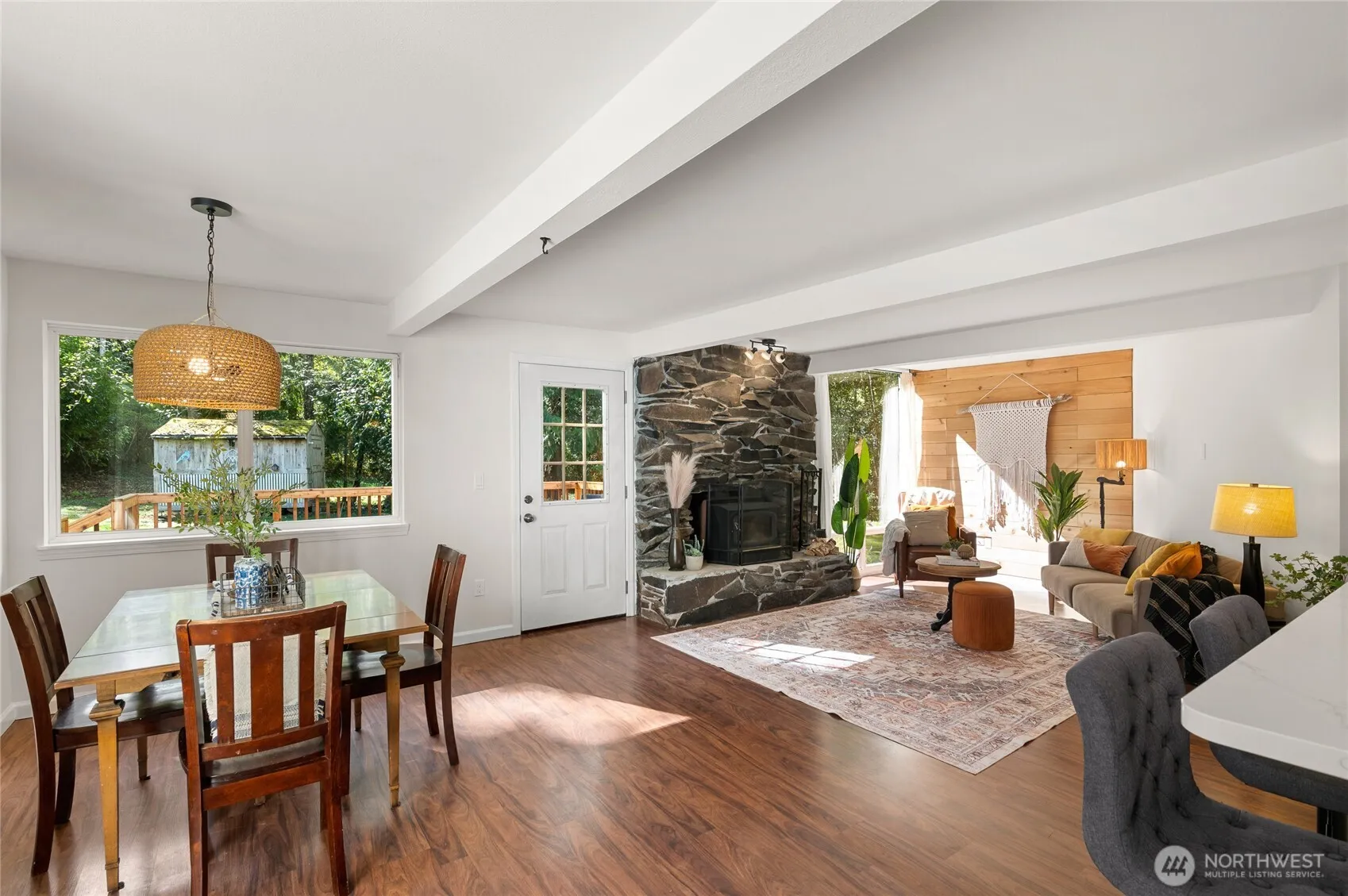Lake Living Made Easy! Walk right across to Lake Roesiger access, this Rambler lives like a 3 bed two bath, sits on a level, nearly one-acre lot with detached SHOP and tons of parking for all your trailers and toys. Lake views! Open-concept layout with a striking rock fireplace, cozy wood stove, new quartz countertops, new stainless steel appliances and big pantry. Primary with walk in closet. Back entry mudroom laundry room. Wired for generator. Low-maintenance metal roof and vinyl siding offers peace of mind. Relax and entertain on your brand new deck and private patio space, surrounded by a huge backyard with so much space to garden and play.