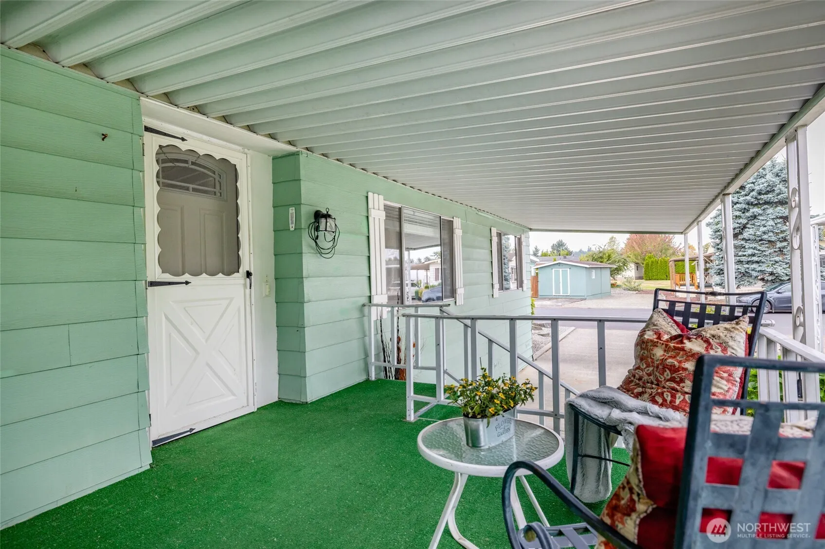 Wave to your neighbors from your spacious covered porch in the quiet and secure 55+ community of Park Village! This 3-bed, 2 full bath floorplan offers comfortable living options with a large living room and separate family room. You’ll find built-in storage in the dining space, and a large updated eat-in kitchen with lots of countertop and a huge pantry closet. The bath off the primary features a separate tub and step-in shower for easy access. Flooring/carpet, kitchen, and main bath are all updated, and a heat pump ensures year-round comfort. Roof is newer within 5 years. An attached shed with power and workshop provides space for storage and hobby needs!