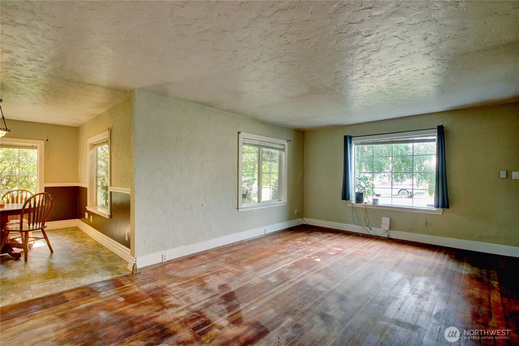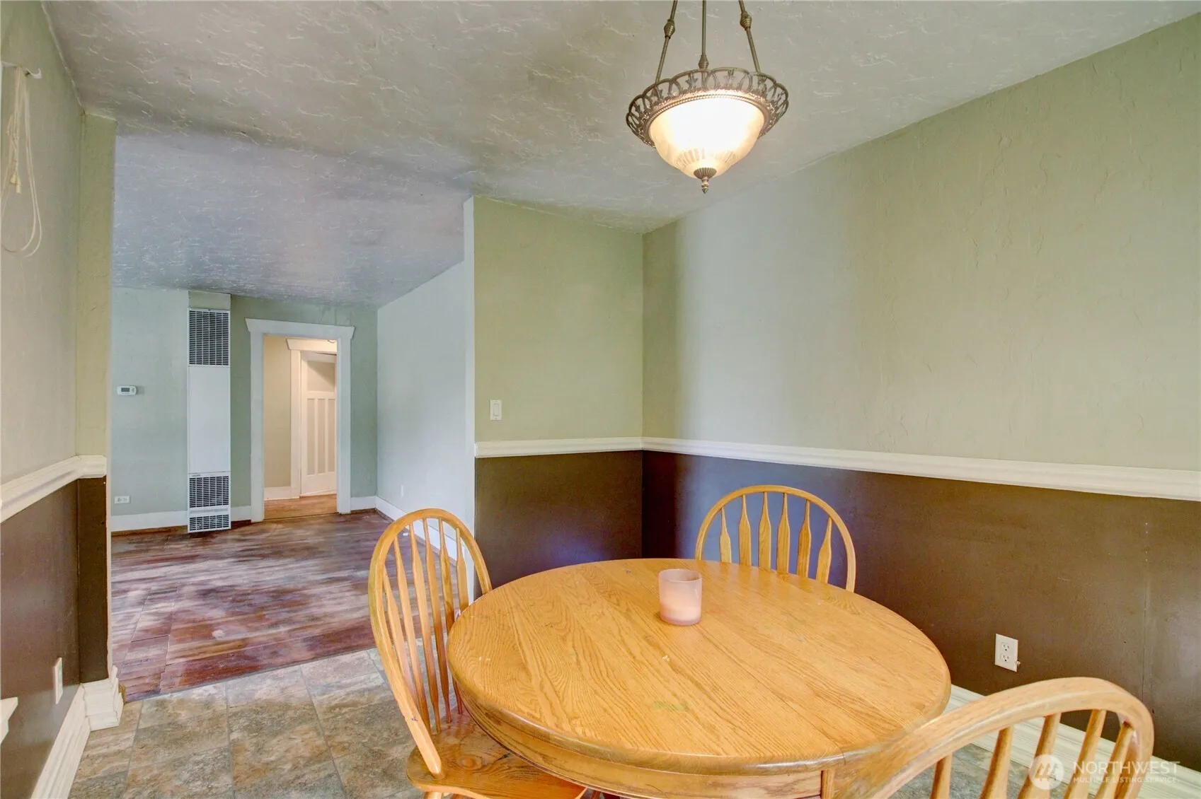 Charming rambler on a spacious corner lot! This home offers potential for a 3rd bedroom if you don’t need a formal dining room. The kitchen features a convenient eating bar and plenty of space for casual dining. Step through French doors to a large, covered deck – perfect for entertaining or relaxing. Enjoy the warmth of natural gas. Wood floors in the living room and bedrooms are ready to be restored to their original shine. With vinyl windows, a fully fenced backyard, brand new gutters and a detached garage, this home is move-in ready!