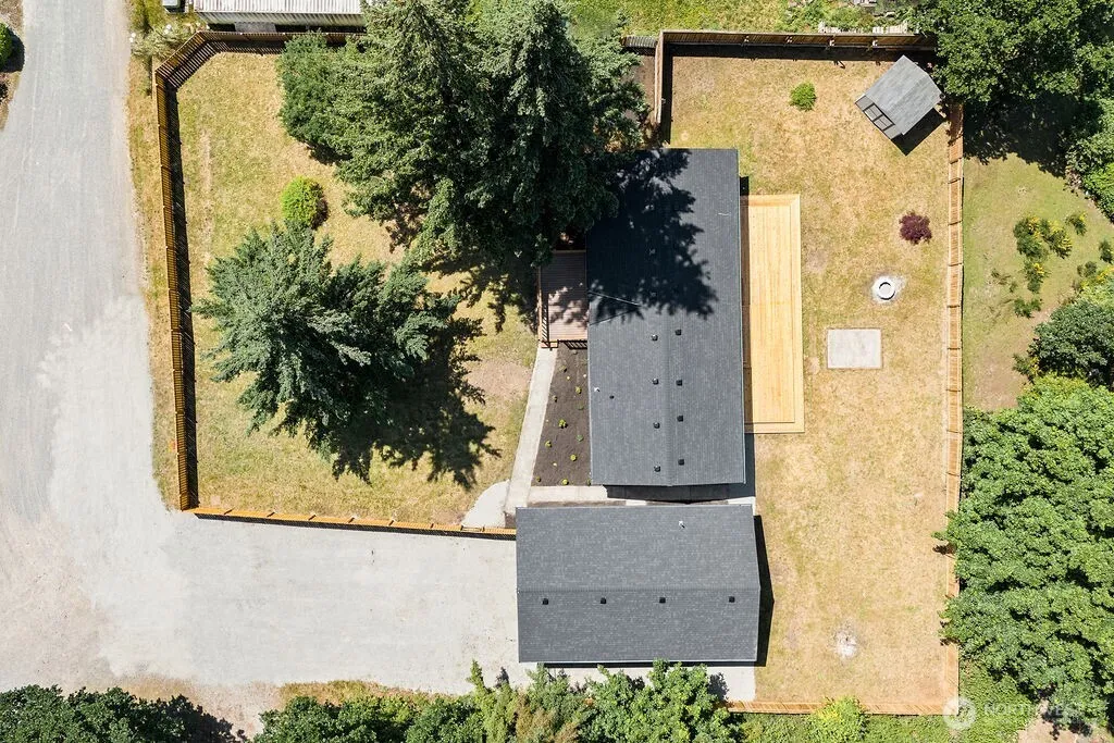 Stylish, modernly remodeled double-wide manufactured home tucked away in a quiet cul-de-sac—designed for comfort, function, and effortless living. This 3-bed, 2-bath gem sits on a fully fenced 0.5-acre lot with endless space for your needs. Inside, enjoy vaulted ceilings, open layout, and a modern kitchen with SS appliances, soft-close cabinets, and waterfall island with eating space. The primary suite offers a walk-in closet, double vanity, soaking tub, and tiled shower. Enjoy a large deck, patio, fire pit, garden space, and backyard shed. Bonus: oversized detached garage with extra storage space! New comp roof, new water heater, and quick access to WA-7. This home is truly move-in ready! Don’t miss this opportunity!