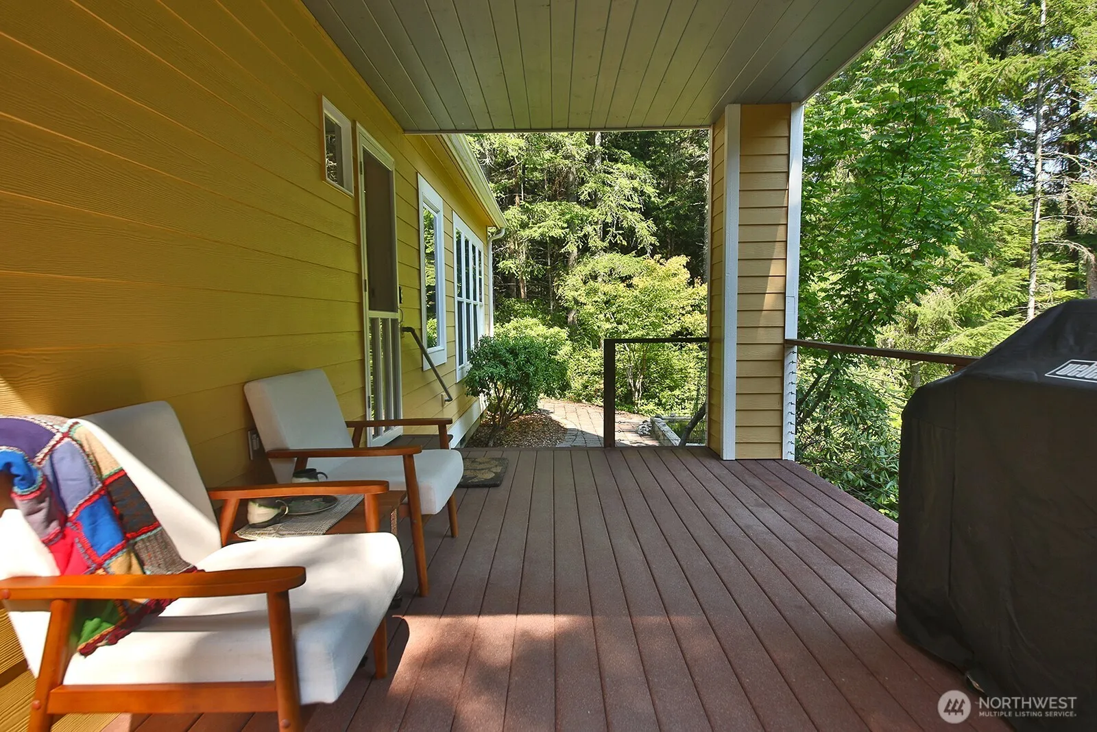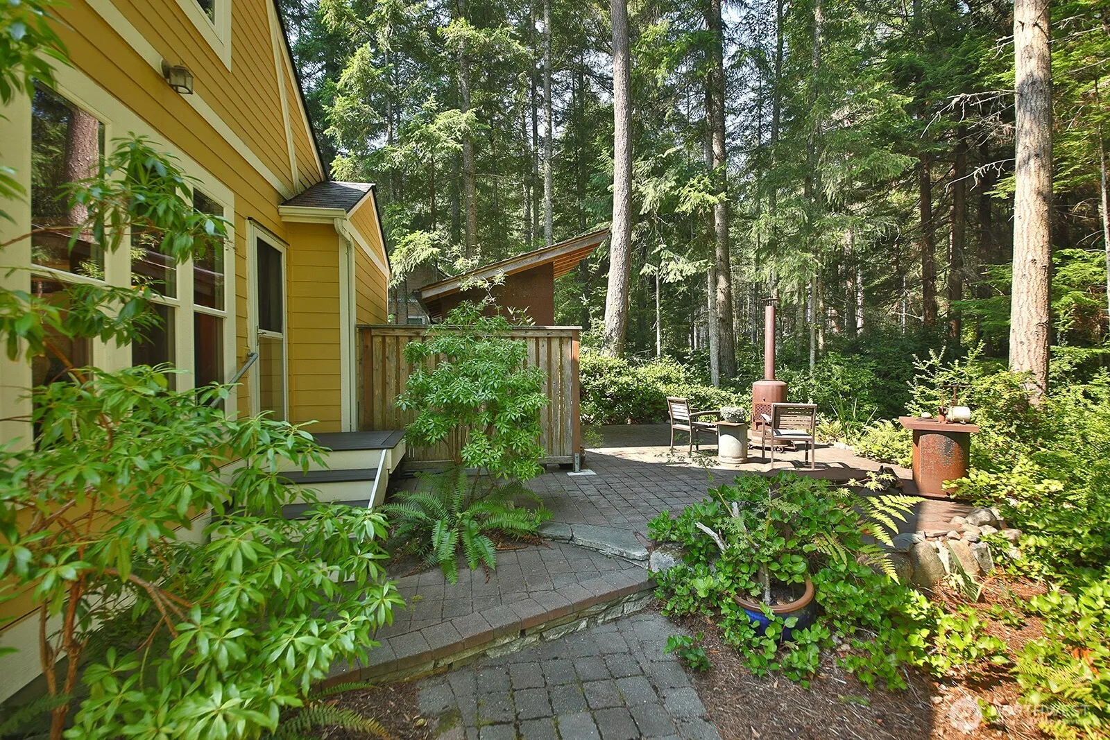 This beautiful custom home is perched just alongside the amazing Putney Woods trail system making recreation or walks peaceful and effortless. Warm, well cared-for home is full of updates including a new roof in 2025. Maple hardwood floors, cherry cabinets and wool carpeting add grounding to colorful interior spaces. There are skylights everywhere! Big banks of windows frame views into the forest, ringed (extra specially!) with wild rhododendrons. A soaring ceiling creates an inspired second floor main suite. The detached garage is two separate bays affording plenty of room for toys and tools. Two expansive patios, big covered deck, Finlandia sauna and an orchard garden with chicken coop and greenhouse nestle in a low-maintenance landscape!