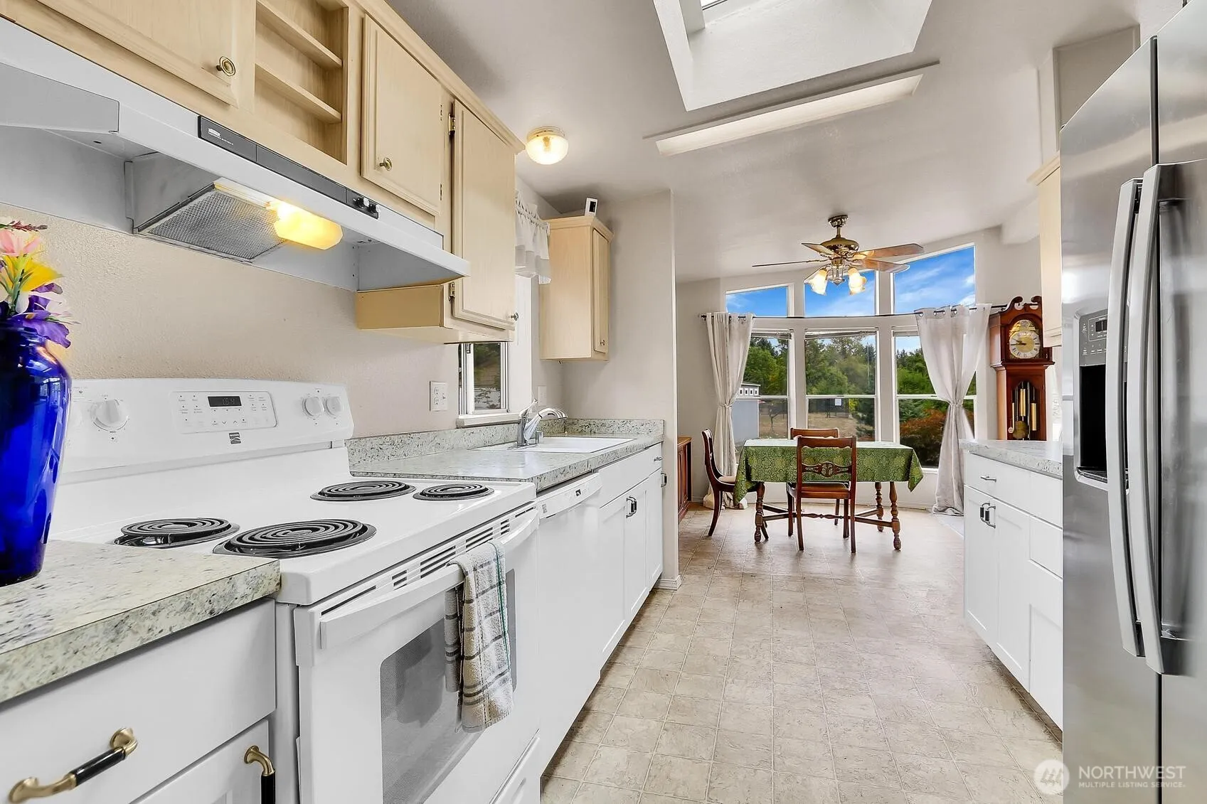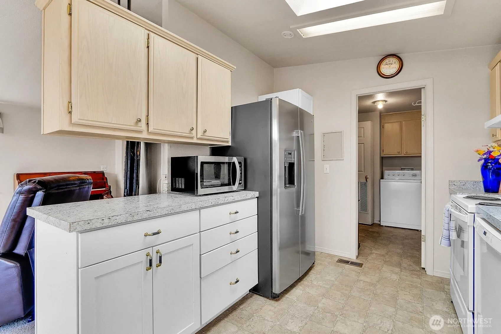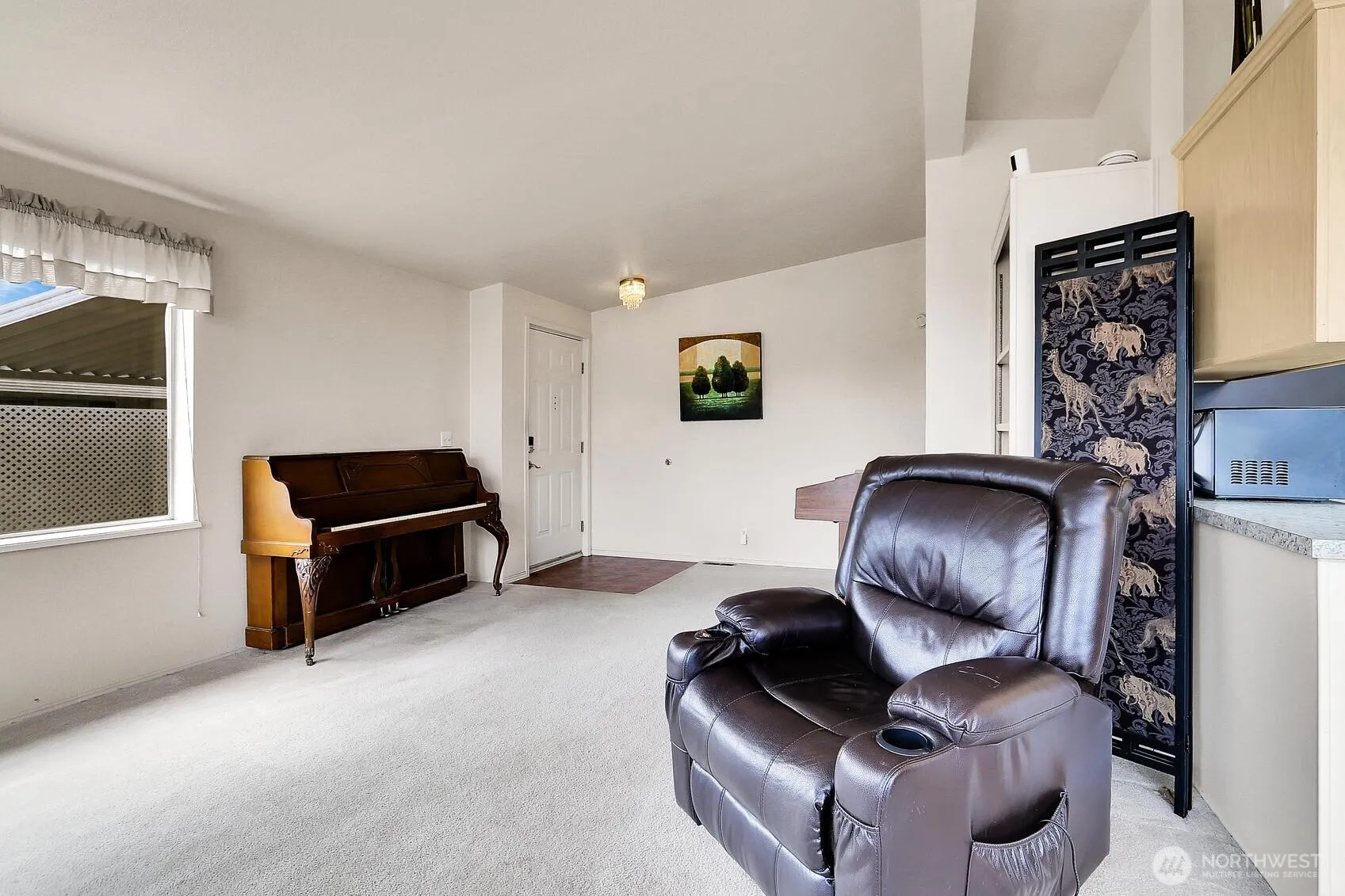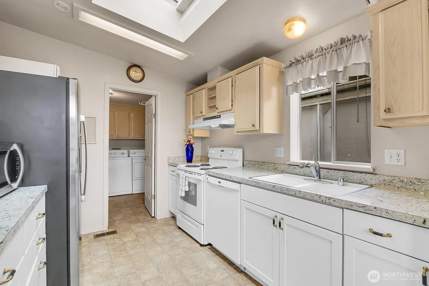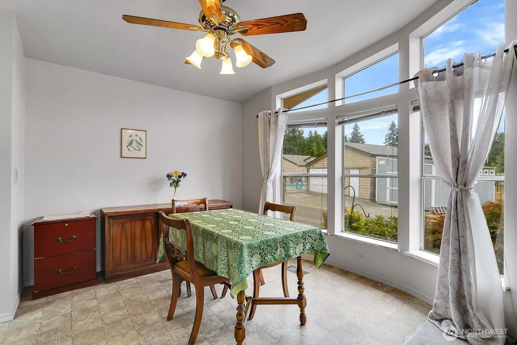 Welcome Home to Friendly Village 55+ community and one of the best locations in the park! East facing bay windows greet the sunrise and offer glorious views of a park-like setting. Open green space, creek view and the occasional glimpse of Mt.Rainier! Conveniently located close to the clubhouse and all of the amazing amenities. This well-maintained home is being offered furnished (dishes too) and ready to go! The home boasts vaulted ceilings, a kitchen skylight, lots of storage, 2 outdoor sheds with electricity, 2 car covered carport and a newer metal roof. New gas furnace and new Bryant heat pump offers central A/C for year-round comfort. This lovely home is being sold as-is and priced to sell! Don’t miss out on this amazing opportunity!