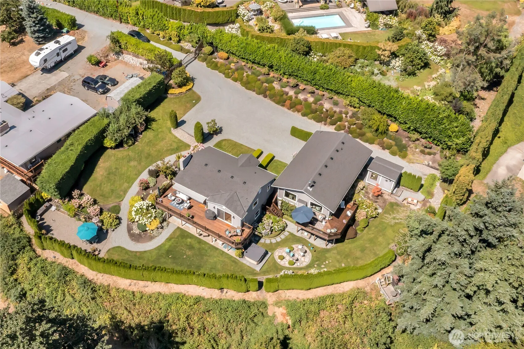 A true Edgewood gem! Mountain view by day ~ beautiful lighted valley view at night. This meticulously maintained 2BD/2BA home with separate 1BD/1BA ADU has been a top-performing Airbnb yet is ideal for multi-gen living. From nearly every room, take in sweeping Mt. Rainier views. Entertain on the expansive deck, unwind in the hot tub & sauna, and enjoy gated privacy with beautifully landscaped grounds. Gas & pellet stoves, tasteful updates, and huge fenced lot. This is a rare retreat being one of the original homes on the hill with views that never go out of style. You would never know this home existed, don’t miss it.