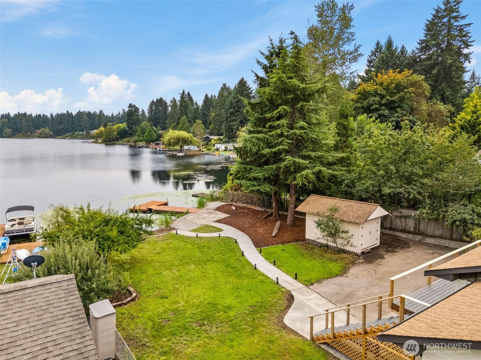 Newly Remodeled Lakefront Retreat on Pattison Lake! This stunning 4-bedroom, 2.25-bath home offers a bright open-concept layout, a fresh new kitchen with stainless steel appliances, and a primary suite with lake views, walk-in shower, and deck access. The separate downstairs living space with private entrance is ideal for guests, multi-generational living, or rental income. Outside, enjoy your expansive deck, private dock, fruit trees, and vineyard, all with breathtaking sunset views over the lake. Close to I-5, this move-in ready home offers the perfect blend of comfort, convenience, and true lakefront living.