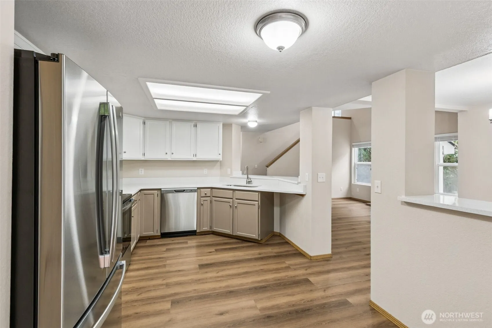 Step into this stunning 3-bedroom, 2.5-bathroom home offering 1,660 SQFT of thoughtfully updated living space. This 2-story gem features a fully fenced backyard with a spacious wrap-around patio—perfect for outdoor entertaining or relaxing in privacy. Inside, you’ll find a modern open-concept layout enhanced by luxury vinyl plank flooring, sleek stainless steel appliances, and elegant quartz countertops. Expansive picture windows fill the home with natural light, creating a bright and welcoming atmosphere throughout. Enjoy air conditioned summers and the cozy fireplace in the winter. Move-in ready with unbeatable convenience close to schools, shopping, & local amenities, w/ quick access to I-5 & JBLM.