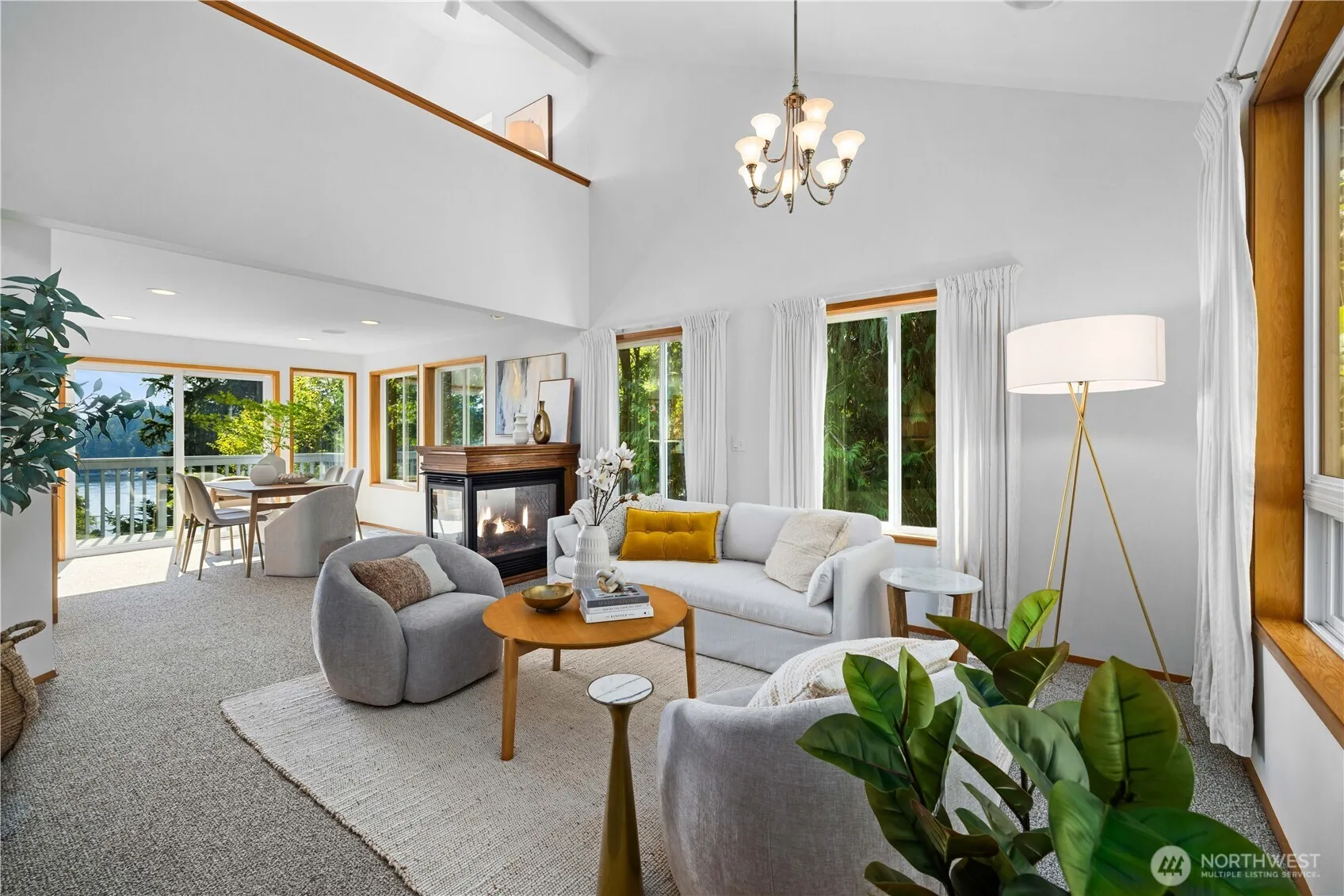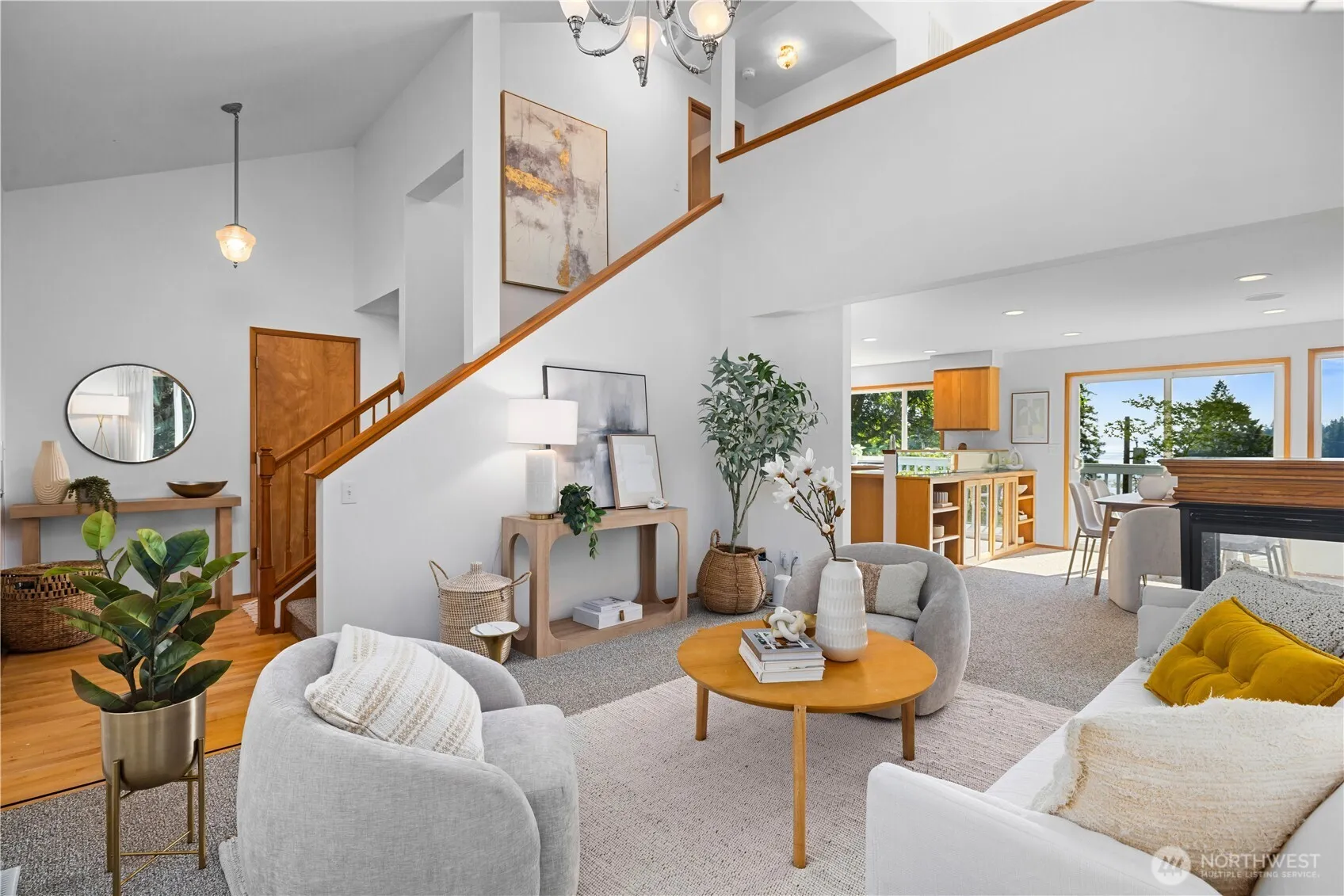Soak in breathtaking views of Agate Pass, Puget Sound & mountains from nearly every room of this beautifully maintained home. Features & updates include vaulted ceilings, custom double-sided gas fireplace, hardwoods, new interior/exterior paint and new carpet. The kitchen & dining room w/ custom built cabinetry flow to deck overlooking garden & spectacular Sound view. The spacious, light & bright loft w/views and private deck leads to primary suite & ensuite bath & 2nd bedrm. Lower level w/ kitchenette, bedrm & separate entrance ideal as a guest suite. Property includes adjacent .08 acre parcel w/ trail to Division Ave. A short stroll leads to the community beach & sport court. This is Pacific Northwest living at it’s finest – welcome home!