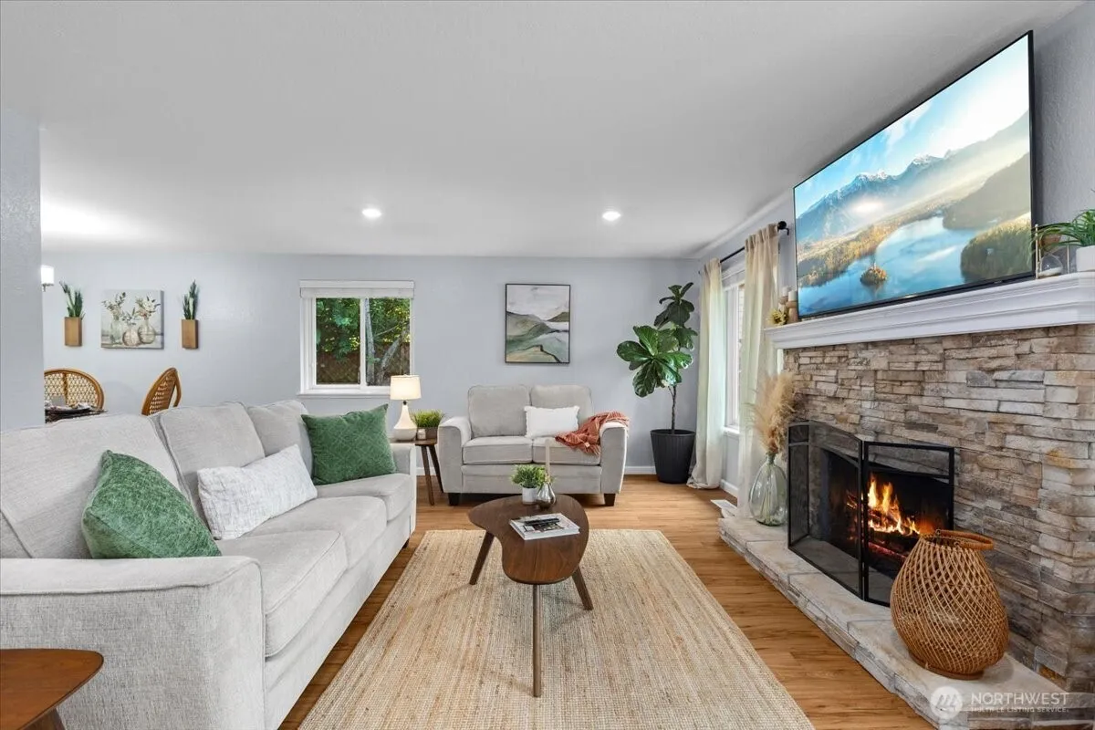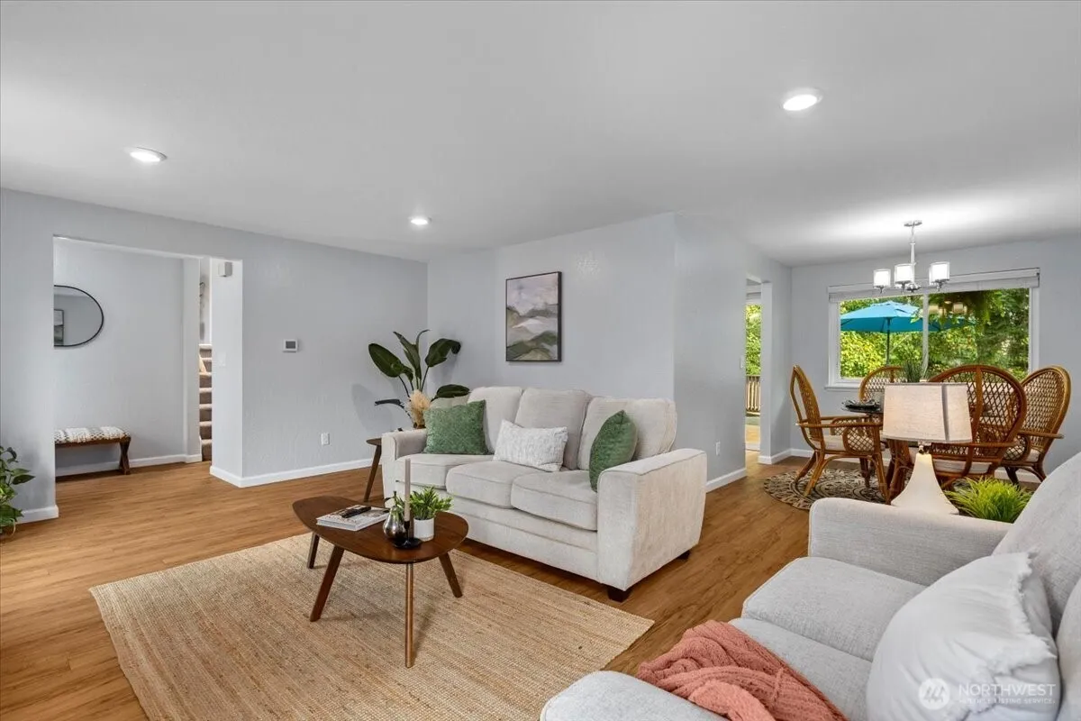 Welcome to this bright and inviting 3-bedroom, 2.25-bath tri-level in the desirable Twin Lakes neighborhood. Main floor features a cozy, light-filled living area that flows seamlessly into the dining and kitchen spaces creating an open and connected feel. Upstairs are 3 beds, including the primary suite. Lower level offers a spacious rec room ideal for a home office, gym, or media space. Newer roof. Newer water heater. Central A/C. Enjoy peaceful mornings and afternoons on an expansive deck overlooking lush greenbelt for privacy. A 2-car garage plus RV/boat parking with NO HOA. EV-ready outlet. Conveniently located near I-5, Hwy 99, Sea-Tac Airport, and the future Federal Way Link Light Rail station. A true commuter’s dream! Preinspected.