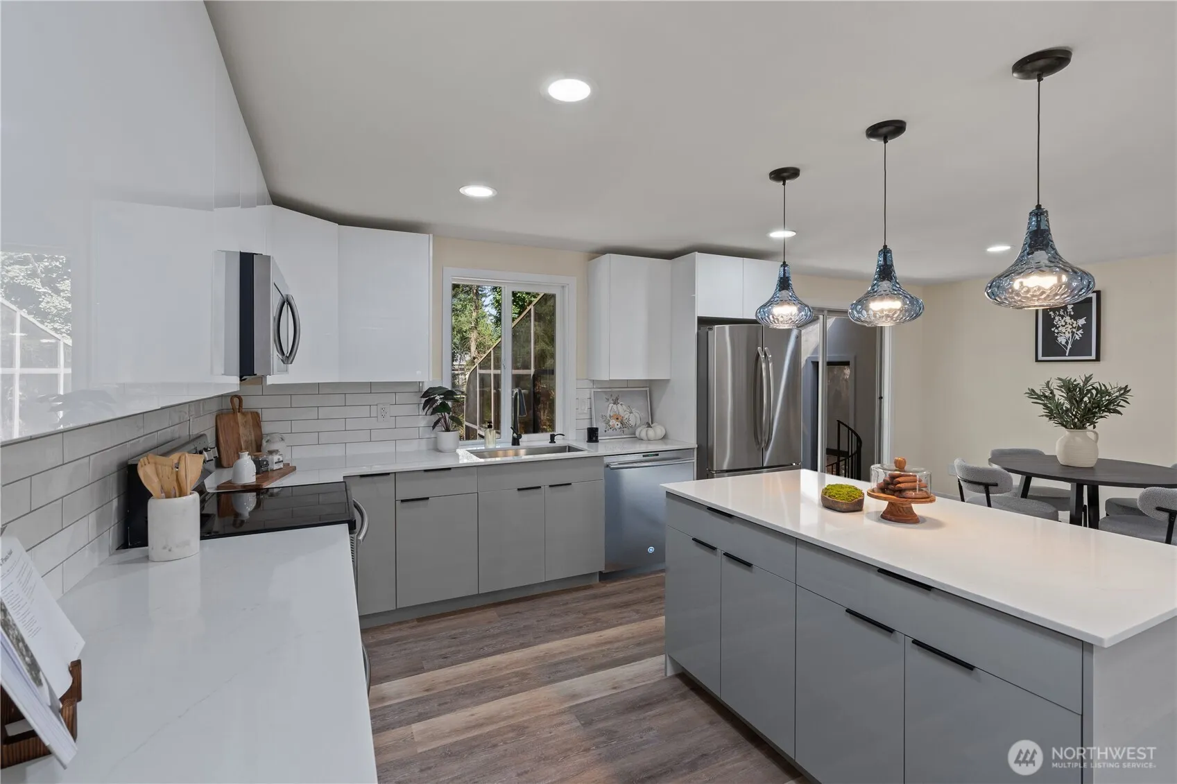 An Oasis in the heart of Federal Way! This home has been refreshed with new flooring, new cabinets, and new bathrooms, creating a bright and welcoming living space. Features include all appliances, a private studio with separate entrance, spacious garage, large lot with tranquil pond, and a glass-covered area for relaxation or entertainment. No HOA! Potential $8,000 down payment or closing cost assistance available from preferred lender for first time Homeowners. Convenient location near freeway & future light rail.
