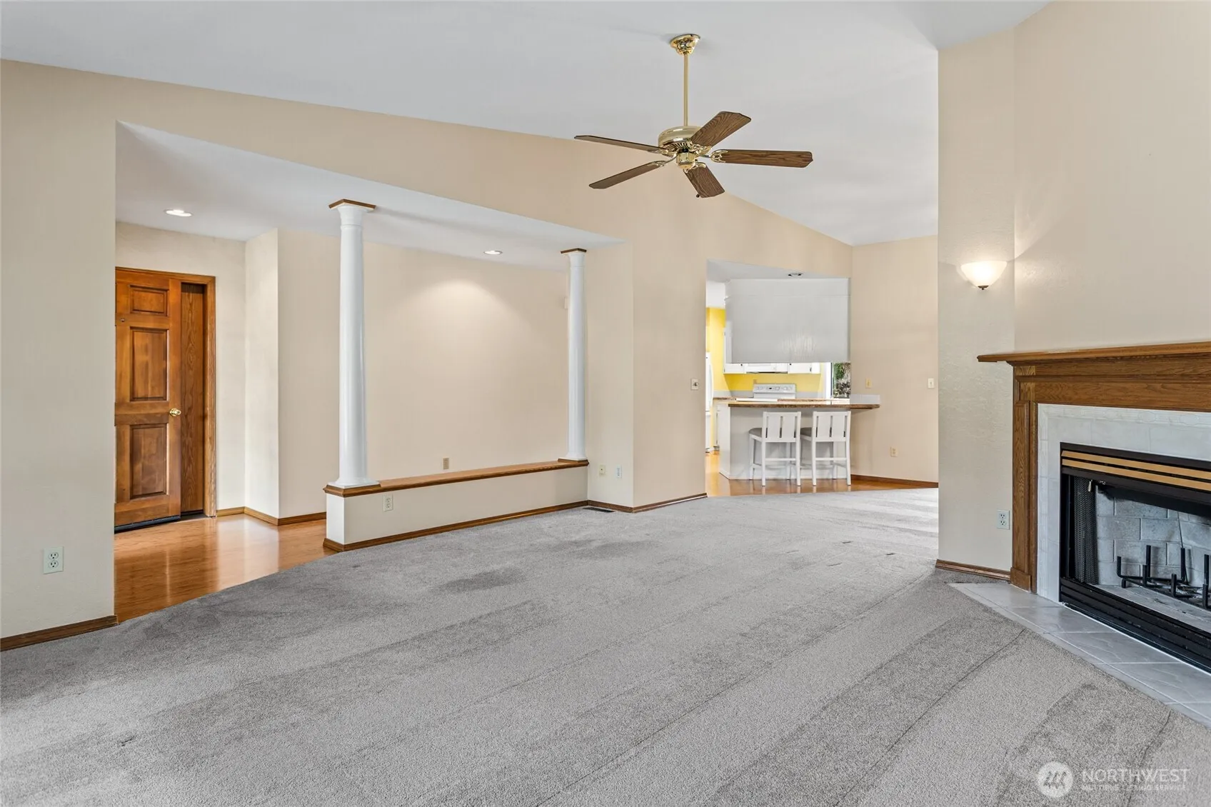 Welcome to Summitview Country Condos, a desirable 55+ community. This 1,431 sq. ft. home offers 2 bedrooms and 2 full bathrooms in an open-concept layout with vaulted ceilings in the living room, a formal dining area, and a spacious kitchen with abundant counter space and storage. The guest bedroom includes a walk-in closet and easy access to a full bathroom, while the primary suite features its own walk-in closet and en-suite bath. Additional conveniences include a laundry room, attached two-car garage, and a peaceful covered back patio. Monthly dues of $421 provide access to the pool and clubhouse, as well as landscaping, snow removal, exterior insurance, water, and maintenance of streets, driveways, and walkways.
