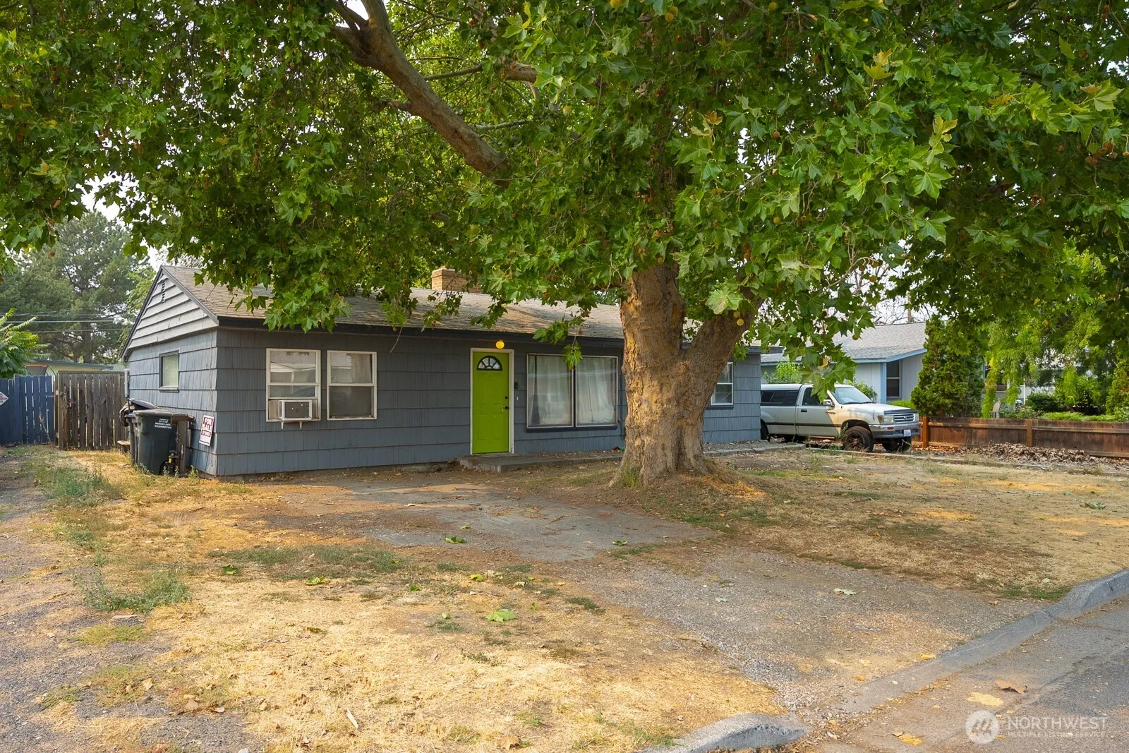 Charming Rambler! 3 bedroom, 1 bath, 1056 sq ft home has a functional layout, plenty of natural light and wood burning fireplace. All bedrooms are a good size. Completely fenced back yard which includes a covered gazebo patio, great for outside gatherings! Enjoy the mature landscape that provides plenty of shade. House needs some TLC, come view today!