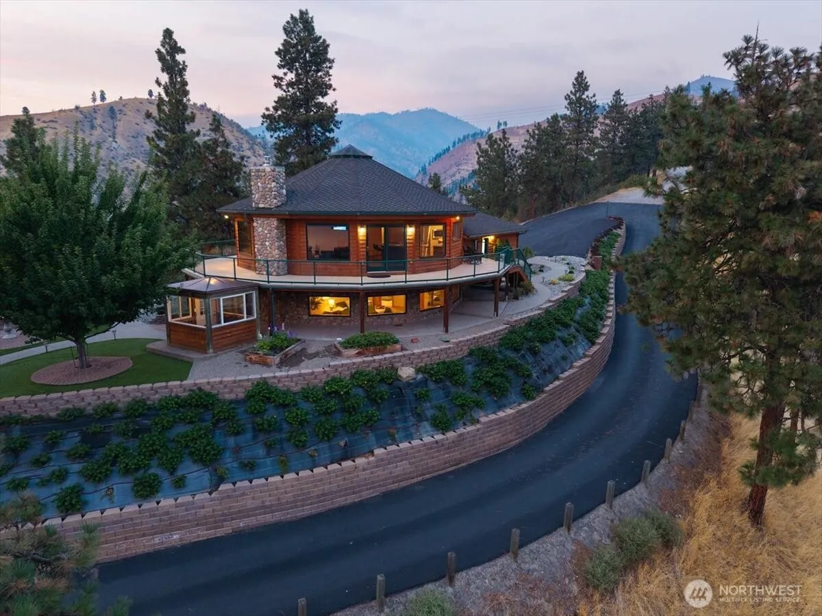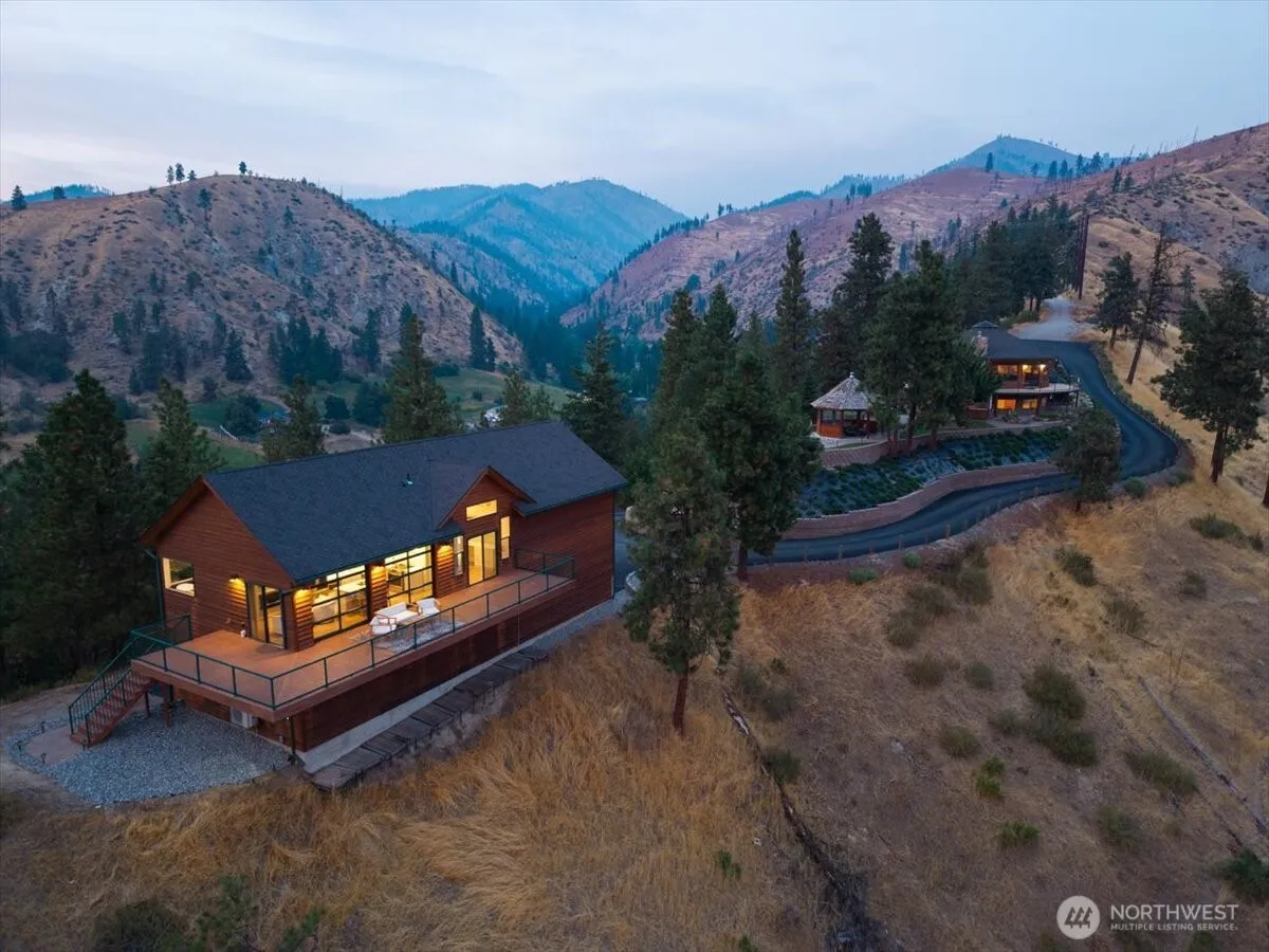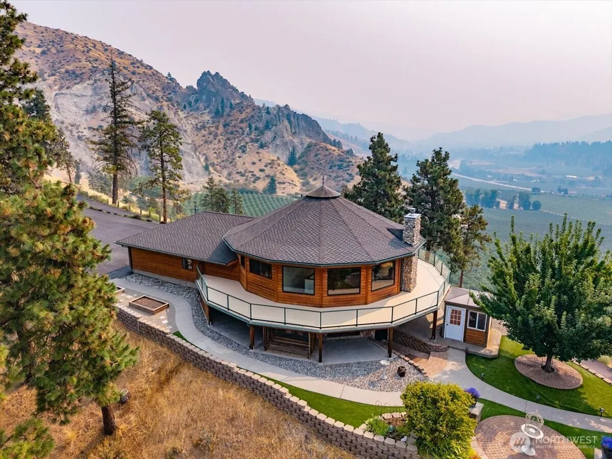 Perched atop your own ridge, this extraordinary home offers complete privacy and panoramic beauty in every direction. Completely renovated custom home leaving no surface untouched. Beautiful pine & groove ceilings, rich hardwood floors, & modern upgrades throughout, including a refreshed kitchen with quartz countertops. Enjoy 360 views of Mt. Cashmere, the Enchantments, Wenatchee River, and more! A remarkable 1,230 sqft, 6-car capacity detached shop with car lift boasts 400 amp power & all the bells and whistles. Detached designer 1-bedroom/1-bath ADU with roll-up garage doors to take in the view, plus a 18×32 metal garage for toys. Landscaped walkways, a gazebo, & 24 acres of serene surroundings make this a truly one-of-a-kind retreat.
