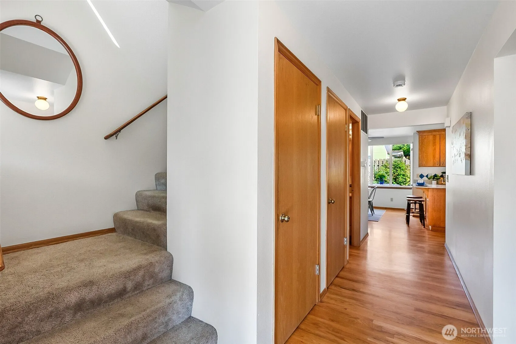 Beautifully maintained 2-story Shoreline home on quiet street with charming front porch, lush garden, fountain & grape-covered trellis. Main level features hardwood floors, gas frplc in LR, formal DR, spacious Kitchen w/dining nook. Family room has been converted into a main floor MIL-style bedroom & bathroom with its own fireplace. Upstairs offers Primary Suite w/walk-in closet & private bathroom, 3 add’l bedrooms, an office/craft rm w/custom cabinetry, laundry room, and full hall bath. Fully fenced backyard w/expansive deck, patio w/firepit & hot tub. 2-Car Garage, RV Parking, Driveway & Front Parking. Steps away from Cromwell Park & Trails. EZ access to I-5, Restaurants, Schools, Shopping. This home and location truly has it all!