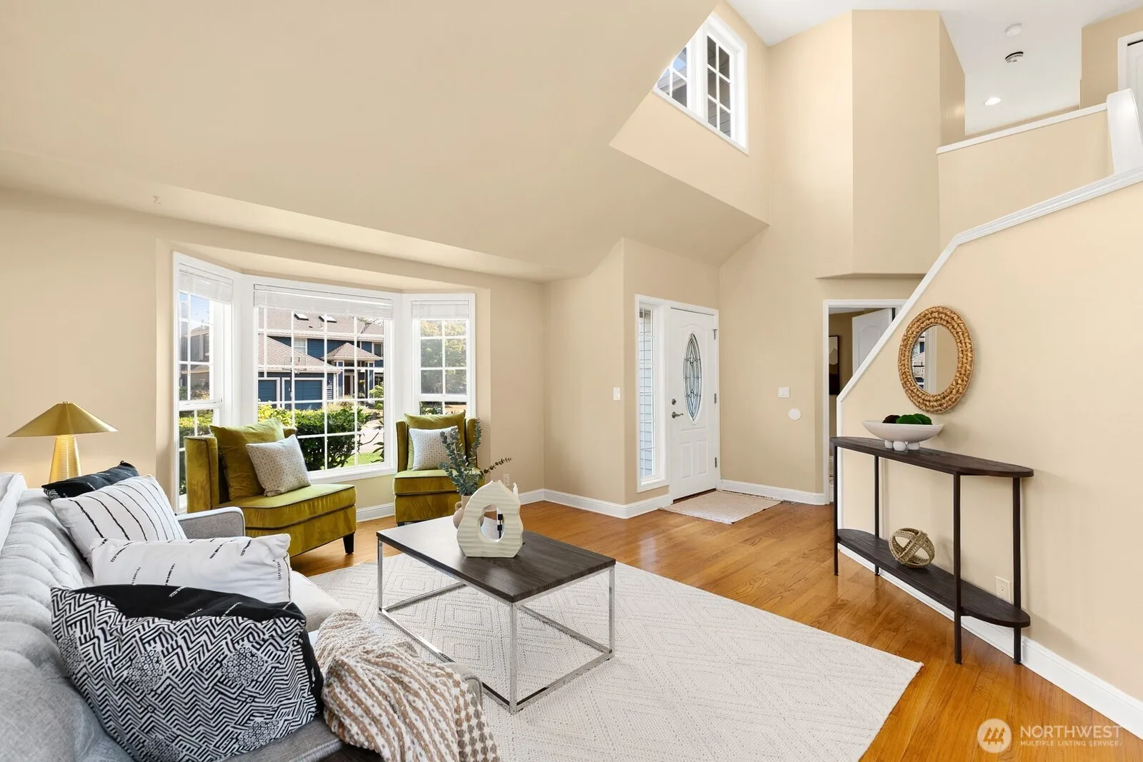 This stunning Northeast-facing Summer Ridge home offers 3 bedrooms, a main-level den, and a fabulous yard. Flooded with natural light, it features a vaulted entry along with bright living and dining rooms. The contemporary kitchen comes with stainless steel appliances, while the bathrooms showcase modern finishes. Freshly painted interiors, newer carpet and built-in customized closets in every bedroom add both style and functionality. Enjoy a spacious front and backyard with direct access to a scenic trail, plus the convenience of an EV charger. Located within the highly rated Lake Washington School District—this home is a must-see! Welcome home!