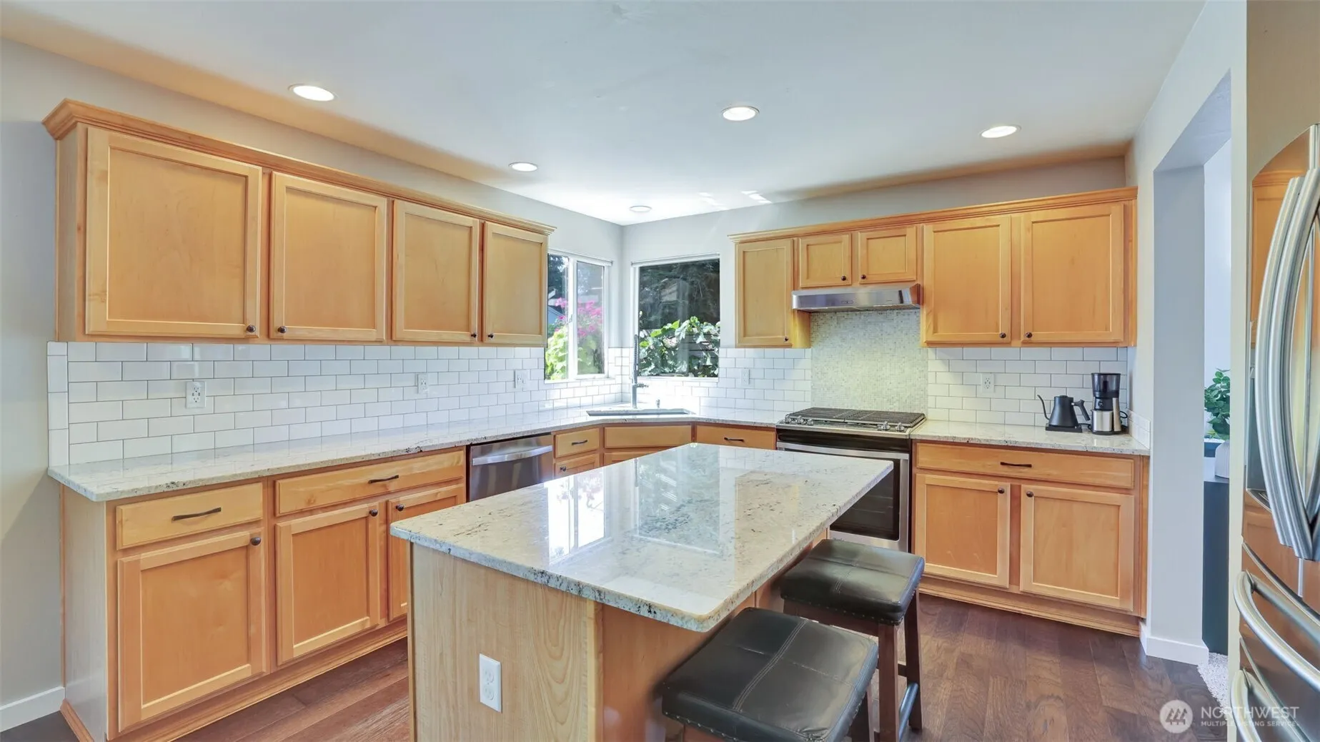 Welcome to this beautiful Maple Valley home in Belmont Court! Featuring soaring ceilings, abundant natural light & an open layout. The kitchen offers ample cabinetry & flows seamlessly to dining & living areas w/a cozy gas fireplace. Spacious primary suite boasts a double-sided walk-in closet & spa-inspired ensuite w/dual vanities, soaking tub & separate shower. Outside, the fully fenced yard offers turf in both the front & back for low-maintenance living, a garden space, & a covered patio w/a hot tub that stays—perfect for entertaining or quiet mornings. Enjoy AC for year round comfort! No HOA & conveniently located near parks, schools, shopping & dining. Located in the award winning Tahoma School District – this home has so much to offer!