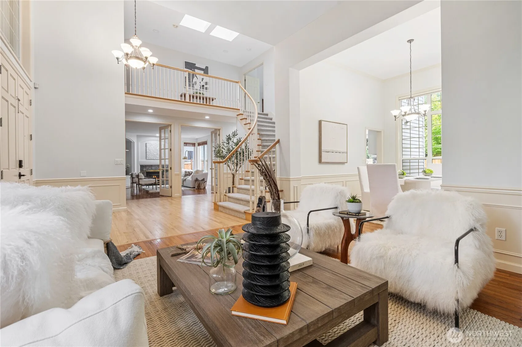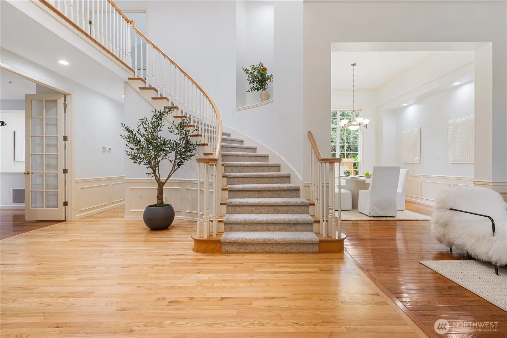 Beautifully updated Murray Franklyn 5-bedroom, 3.5-bath in The Parks with $200K in upgrades! Dramatic entry with vaulted ceilings and skylight fills the home with natural light. Formal living and dining plus spacious family room with dual fireplaces and built-in speakers—ideal for entertaining. Chef’s kitchen features quartz counters, garden window, and serene greenbelt views. Luxurious primary suite offers vaulted ceiling and spa-like bath with freestanding tub. Mini-ensuite upstairs and main-floor bedroom with adjacent bath provide flexible living. Fresh paint, new hardwoods, carpet, fully remodeled kitchen and baths, new fence, and trail access. Top schools, near Mill Creek Town Center—move-in ready!