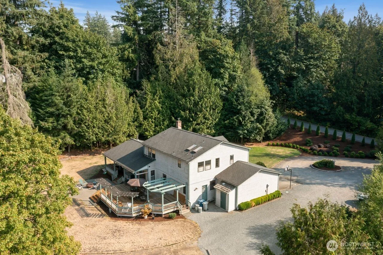 RARE FIND… Prime 1.73 private acres in the heart of Maple Valley. WOW factor… Beautiful park like setting will excite any homeowner especially if your looking for privacy. 3/4 bedrooms 2.5 bathrooms, almost 2600 SF of living space with main floor flex room/ bdrm. Circular entry driveway leads you to endless possibilities regarding this flat usable acreage. Open concept floor plan that moves seamlessly from room to room. The large kitchen off family room provides the chef an excellent environment with a huge island, SS appliances & quartz countertops. You will totally enjoy the main floor bonus room with freestanding fireplace for those intimate times. Huge back deck & fire pit will definitely be a hit for entertaining or quiet times.
