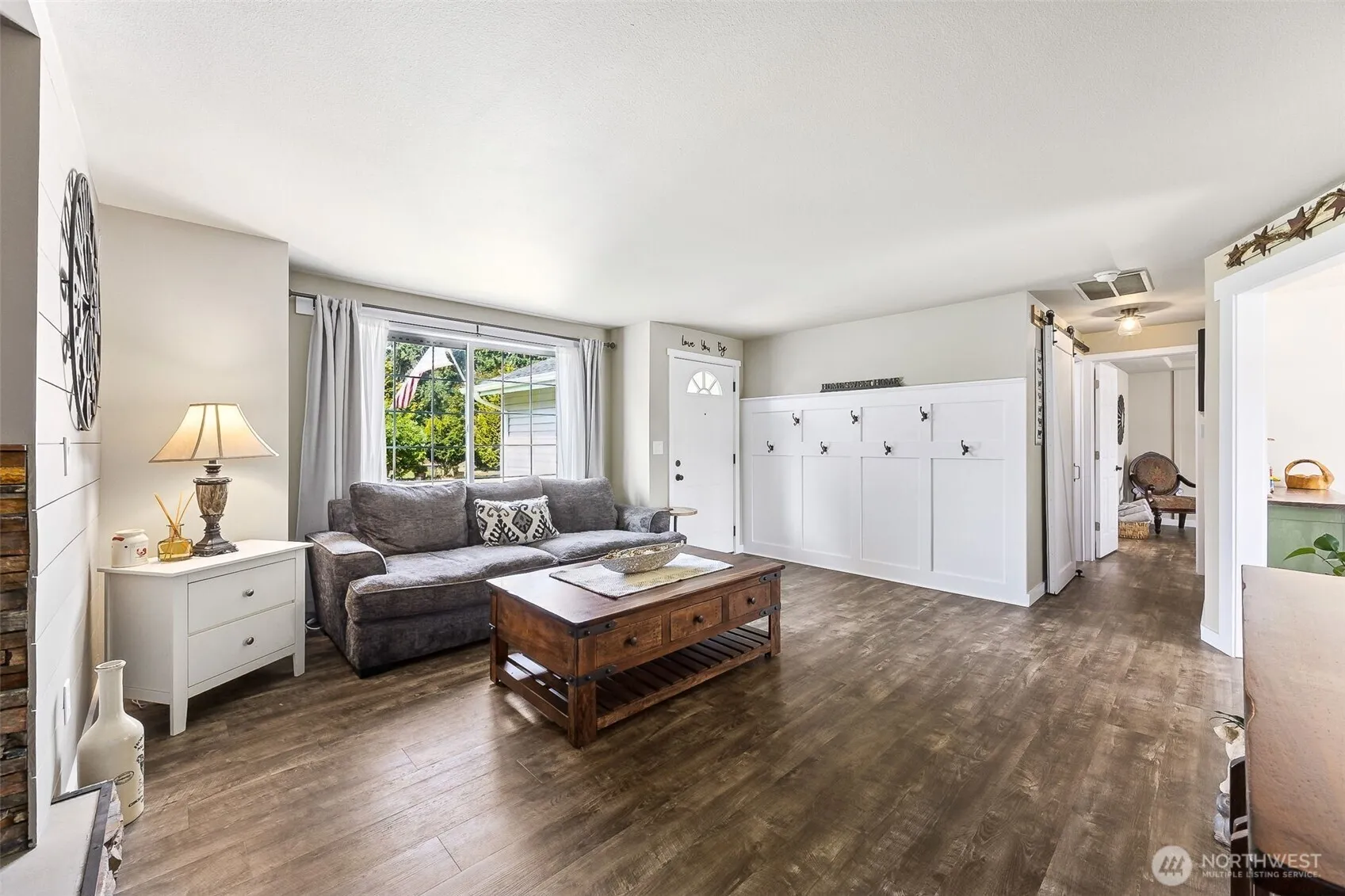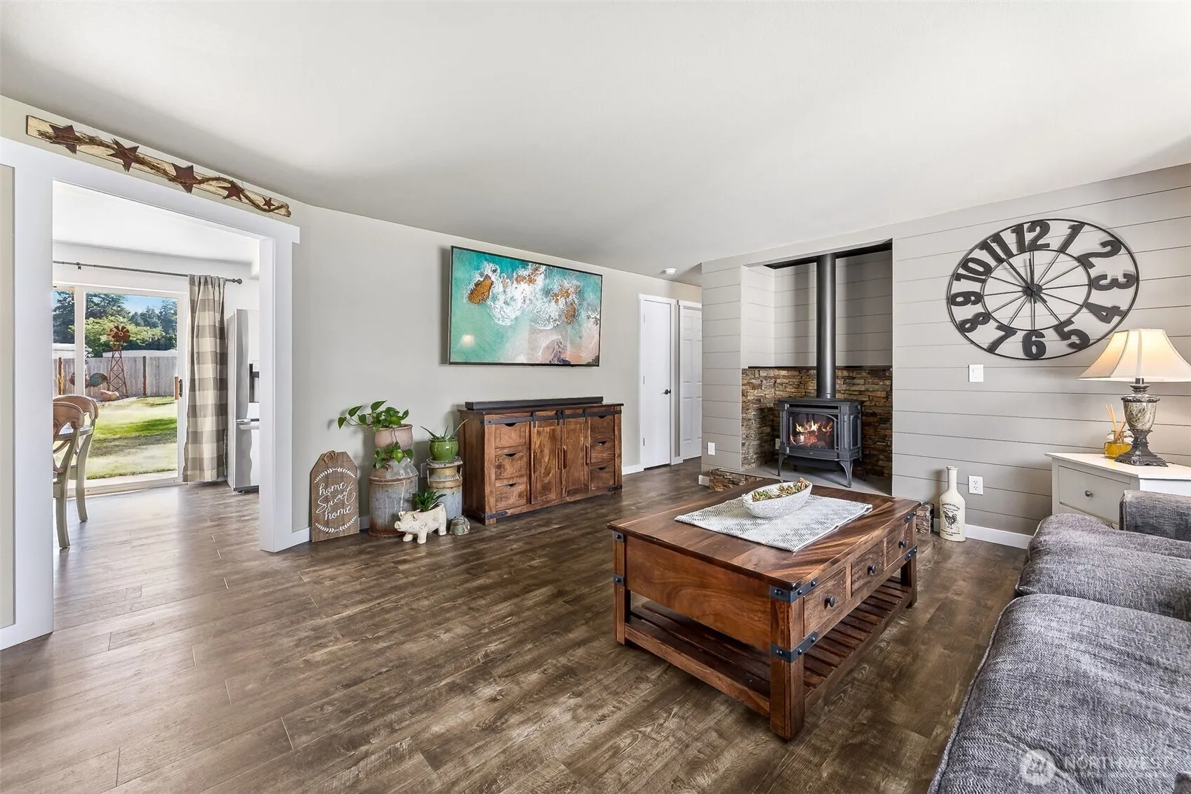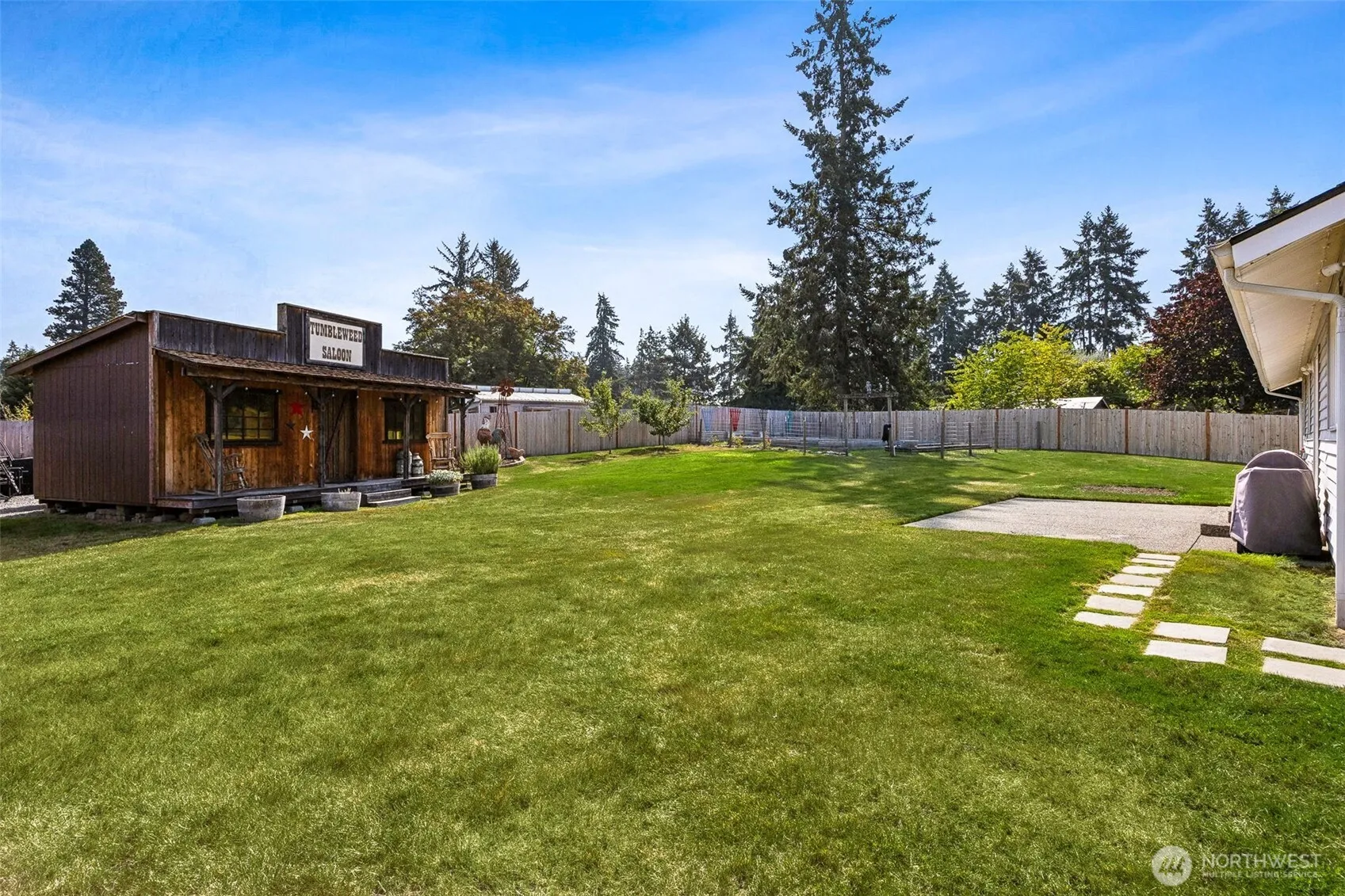 This thoughtfully updated 1-story home blends comfort, style, & efficiency on a generous 14,998 sq ft lot. Enjoy high-end upgrades including custom built-in hearth with gas stove, mounted flat screen tv. Remodeled kitchen, walk-in pantry, custom cabinet organizers, SS appliances, gas range & wine fridge. Bathrooms feature custom finishes & spa-worthy Bluetooth speaker/fan/lighting. Efficient heat pump/AC & tankless water heater. Front-to-back parking for RVs, boats, & toys. Fully fenced backyard with patio, enclosed raised garden beds, fruit trees, & custom 12×20 Saloon! Walk to schools, easy commute to JBLM. A must-see!