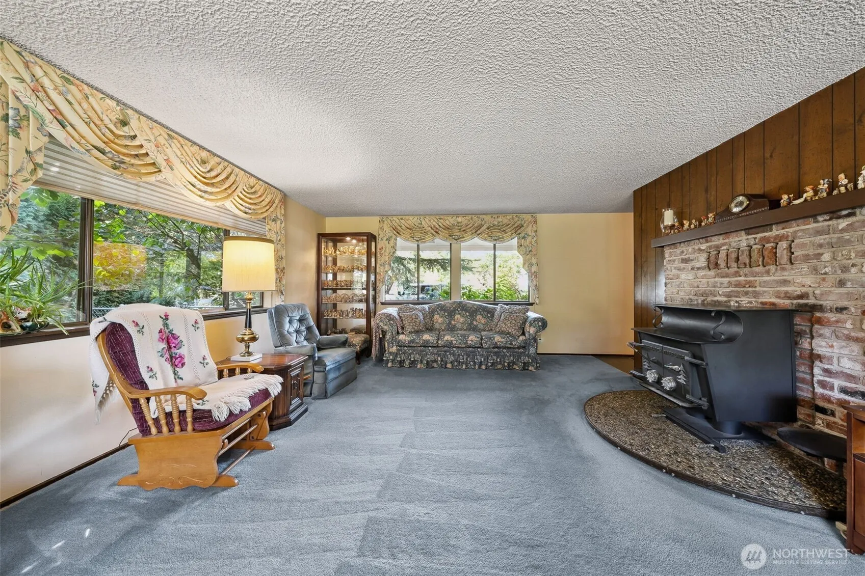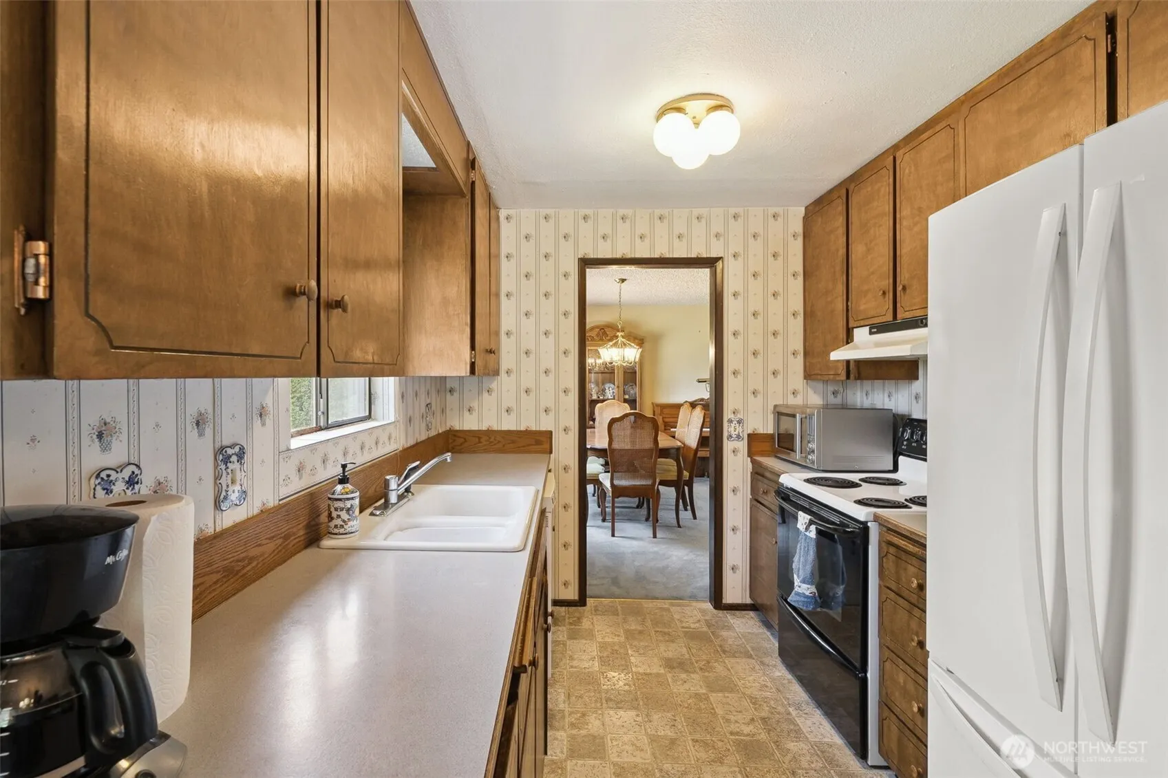 Country living at this 3 bed, 1.5 bath, 1,900 SF home on 2.43 AC in Enumclaw! Vinyl entry leads to spacious living room w/ wood stove & adjacent dining room. Kitchen w/ eating nook, pantry storage, built-in desk + storage, & screened in porch off of dining area. Large laundry w/ utility/mud room. Family room w/ tall ceilings, exposed beam accents, & pellet stove. Guest bed & .5 bath w/ tile floors downstairs. Two good sized bedrooms upstairs w/ walk-in closets. Full guest bath up w/ tile floors. Large back patio & beautifully maintained landscaping w/ fruit trees. 28’X28′ detached garage w/ attached, fully-finished room that was previously a daycare. Small barn w/ 1 stall + calving stall. Forced air furnace + AC. Comcast cable + internet.